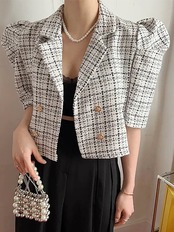 [EWQ] チェック柄パフスリーブラペルルーズジャケットシングルブレストオーバーコート夏トレンド 16O81 サマー 夏物