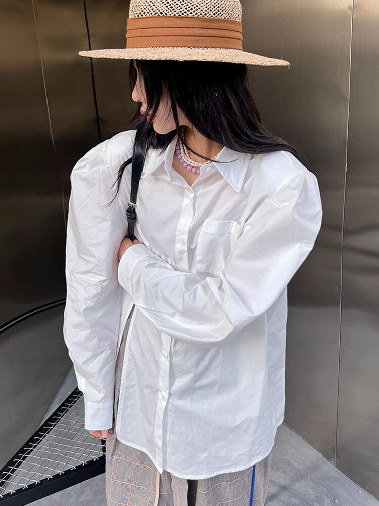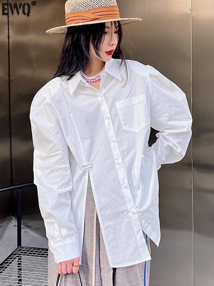 [EWQ] ホワイト不規則スプリットシャツ長袖ルーズフィットシングルブレストトップ夏潮 16U305 ロング サマー 夏物