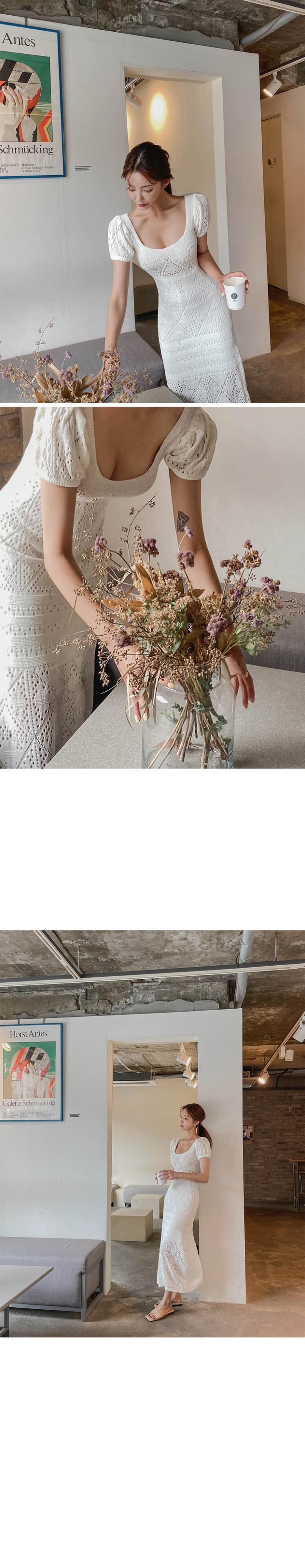 [EWQ] セクシースクエアネックニットドレススリムフィット半袖気質中空アウト夏潮ドレス Vestido ショート ハーフスリーブ サマー 夏物 スクウェア
