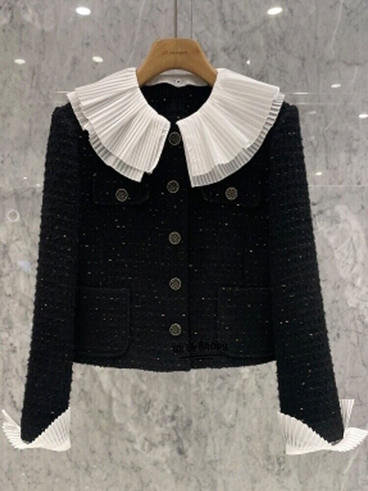 [EWQ] ツイードジャケットフリルスプライスラペル気質シングルブレストウールブレンドコート秋 16U836 オータム 秋物