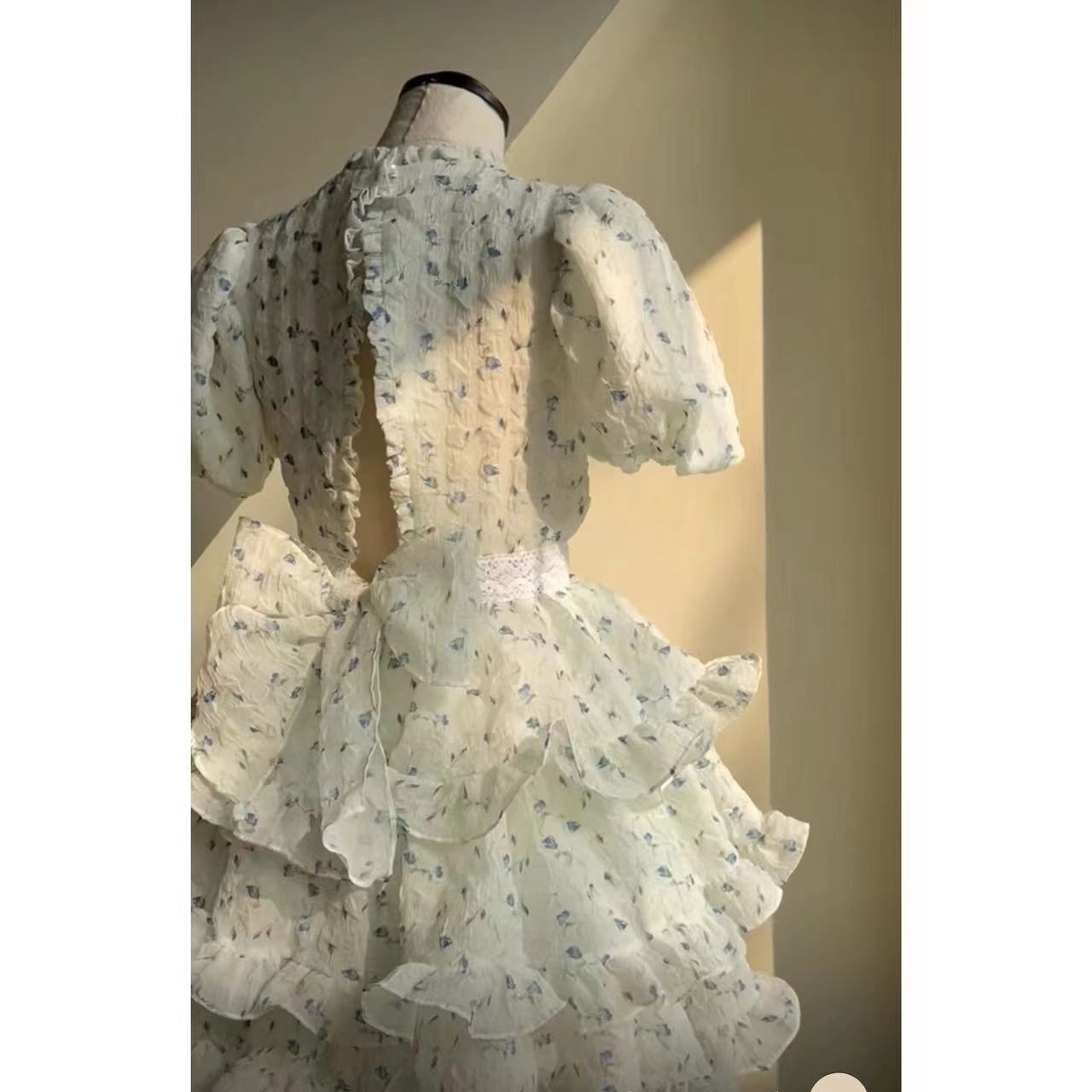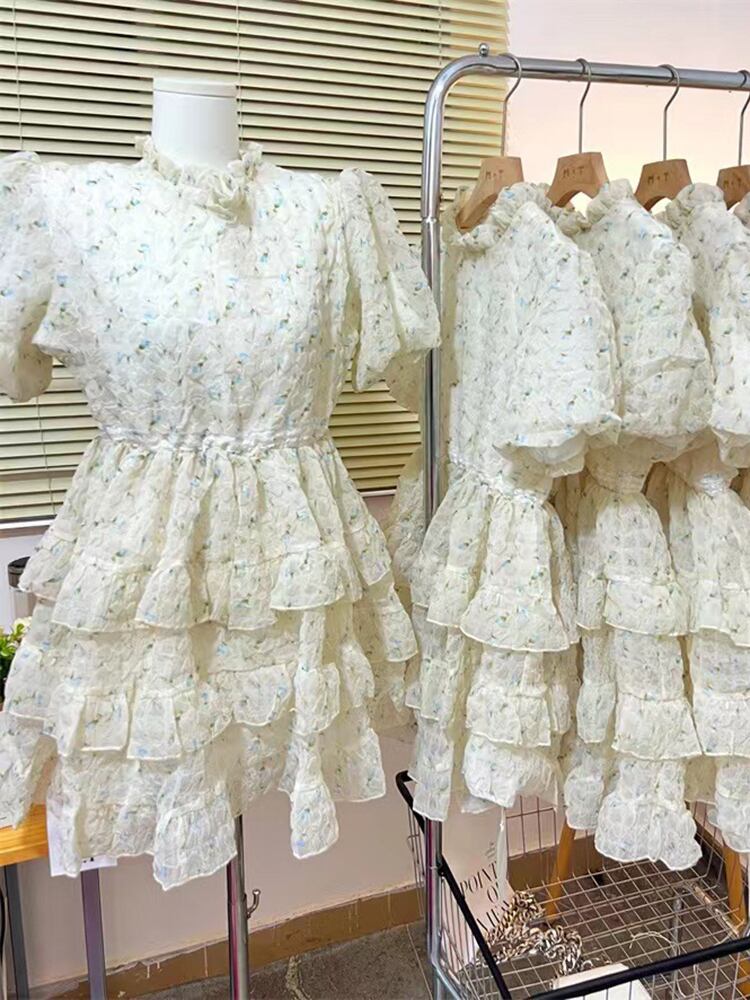 [EWQ] バックレスプリントフラワーミニドレスフリルパッチワーク半袖甘い気質ドレス夏 ショート ハーフスリーブ 大人ガーリー スウィート キュート カジュアル サマー 夏物 フラワーデザイン