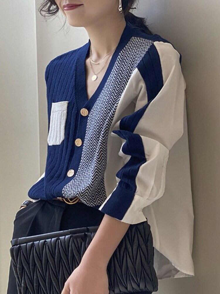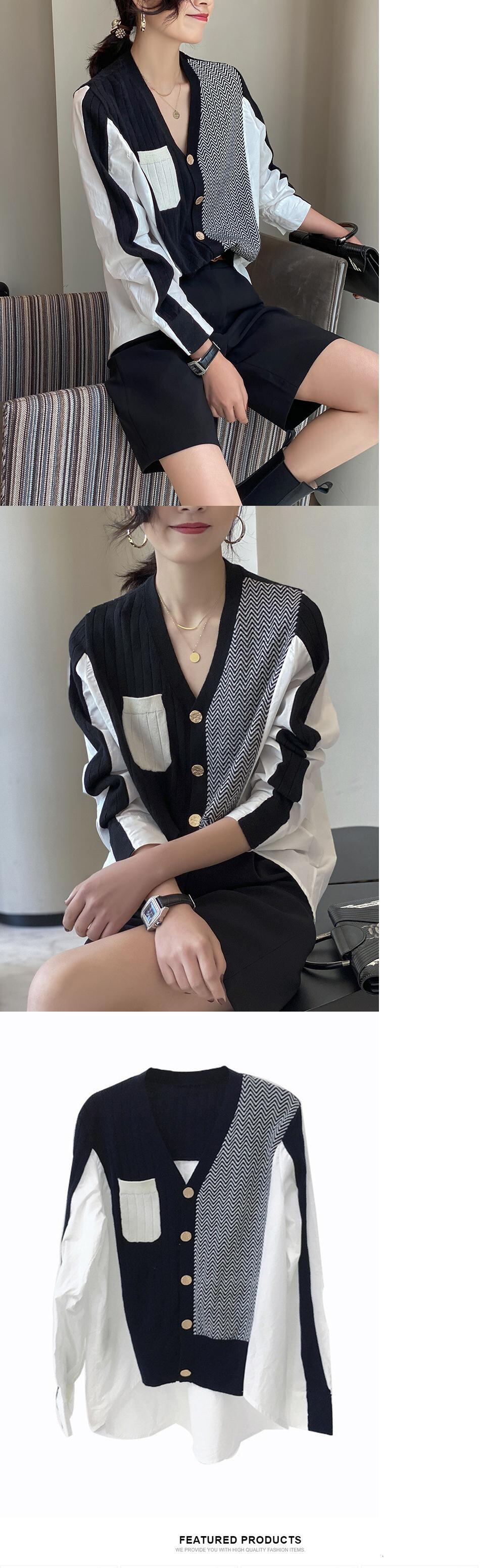 [EWQ] セーター ニットウェア 薄い秋パッチワーク不規則シングルブレスト緩い弾性カーディガン ジャケット エラスティック 伸縮 オータム 秋物