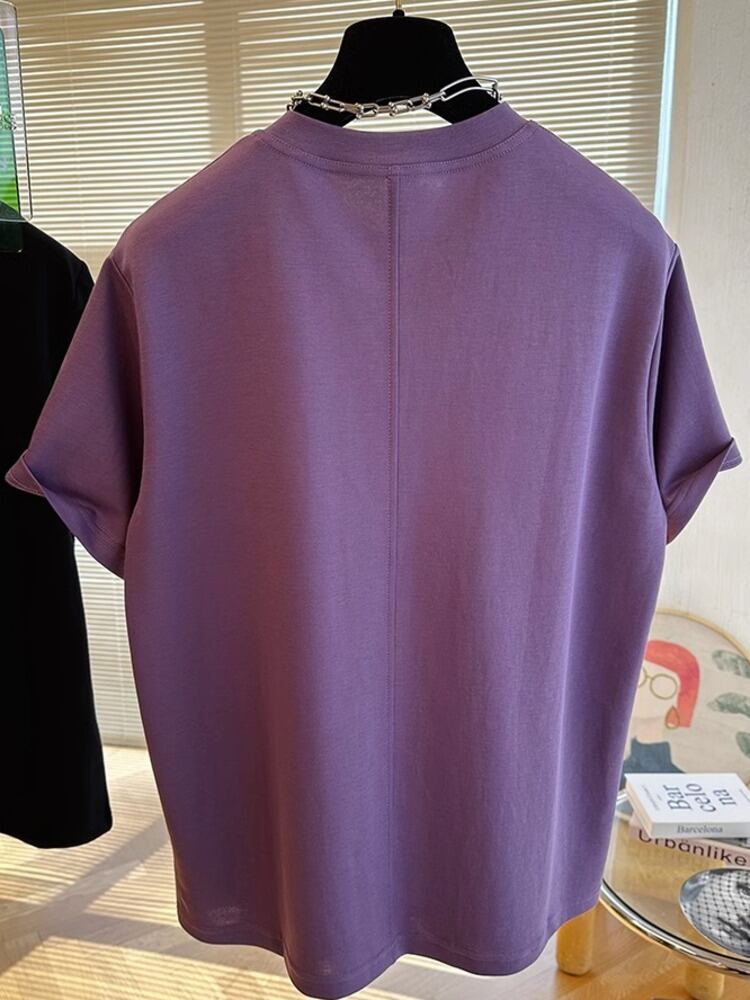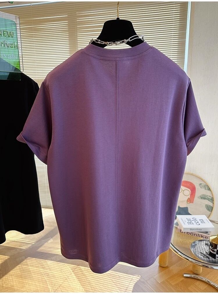 [EWQ] 大きいサイズ O ネックパープル Tシャツシンプルルーズ半袖 Tシャツトップ夏潮 Tシャツ 16U884 ショート ハーフスリーブ 大きめサイズ サマー 夏物 Oネック