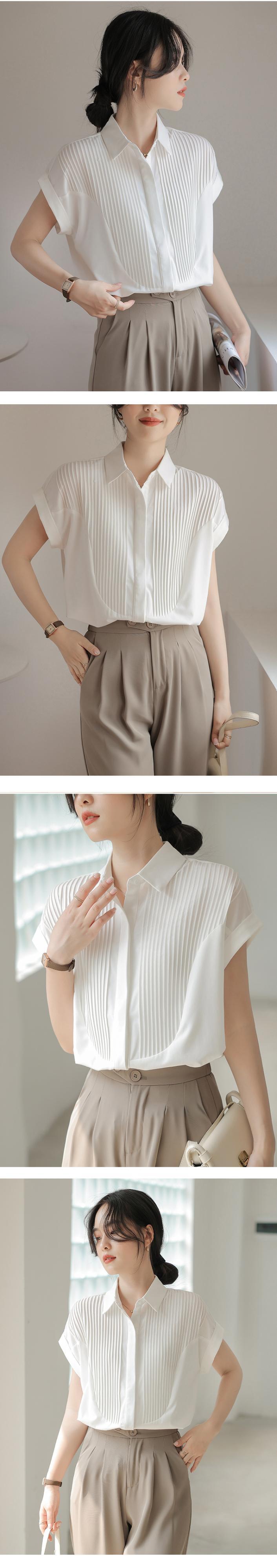 [EWQ] ホワイトプリーツシャツシングルブレストルーズフィット気質夏潮トップ 16U473 サマー 夏物