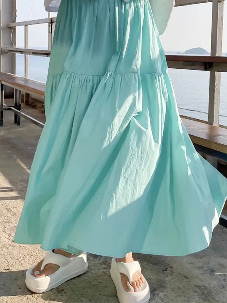 [EWQ] 多用途プリーツ弾性ワーシトスカートソリッドカラールーズオールマッチ夏トレンド エラスティック 伸縮 サマー 夏物