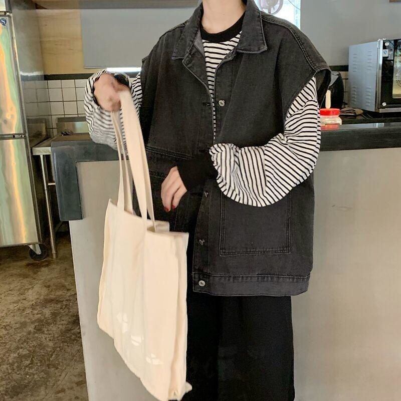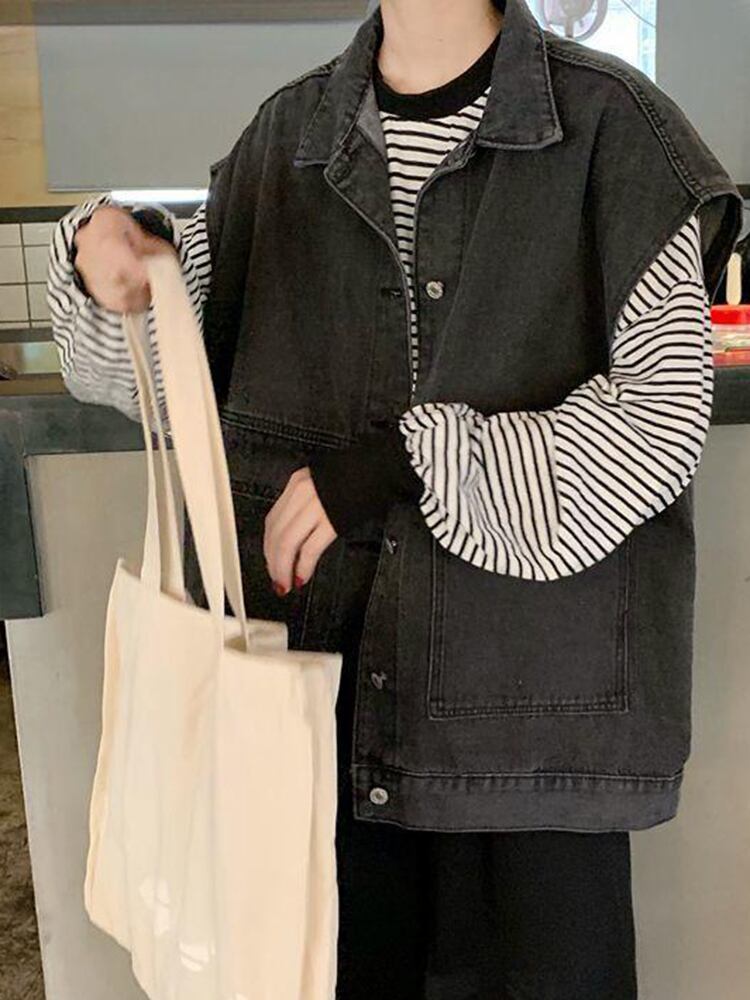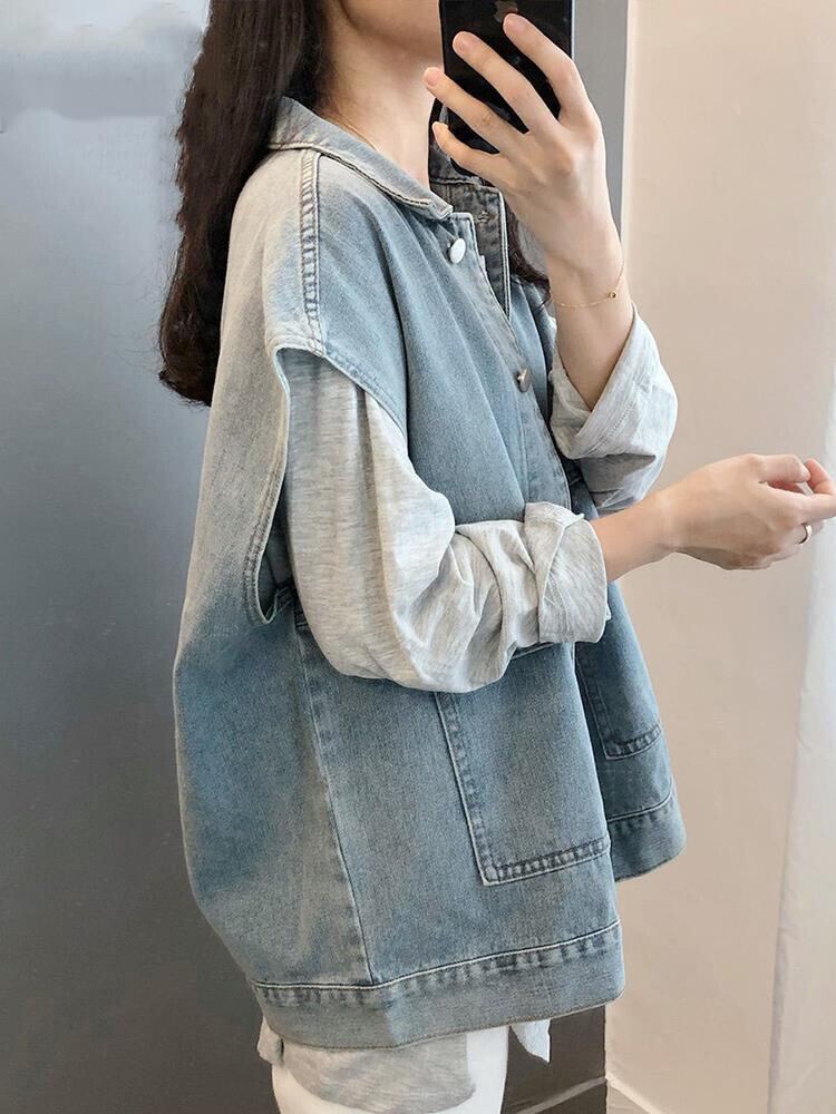 [EWQ] ルーズ デニム ベスト ストリート シングルブレスト ノースリーブ ジャケット 夏 トレンド ポケット チョッキ 16O69 サマー 夏物