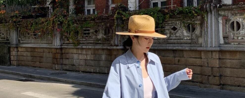 [EWQ] ブルーシャツ長袖ルーズフィットシングルブレスト夏潮裾不規則 16U382 ロング サマー 夏物