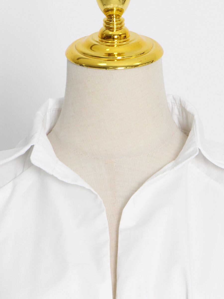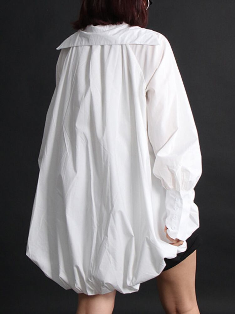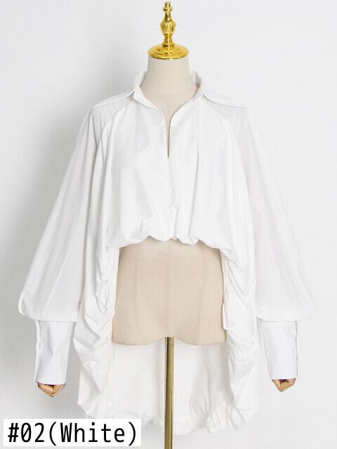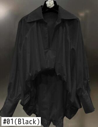 [EWQ] ホワイト不規則裾シャツ V ネックバットスリーブソリッド非対称ブラウス秋潮トップス オータム 秋物 Vネック ソリッドカラー