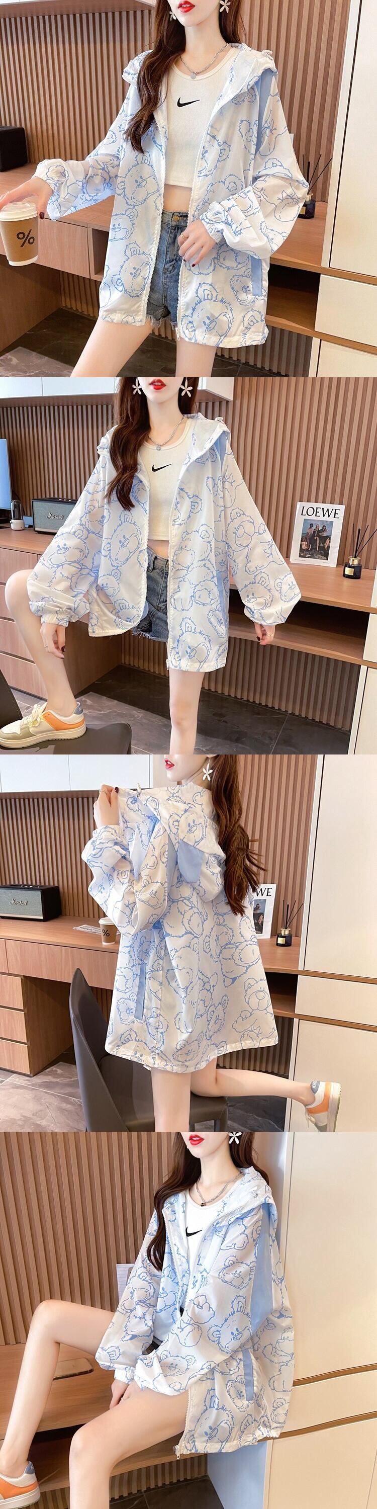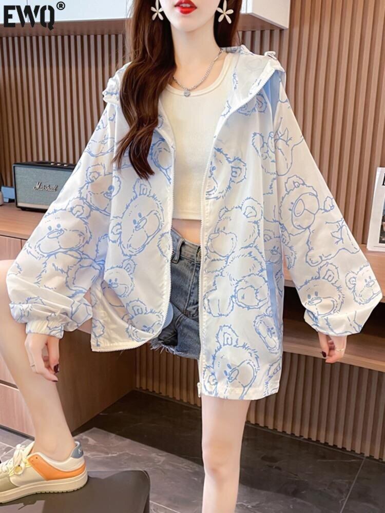 [EWQ] フード付きプリントサマーシャツコントラストカラーランタンスリーブジッパー夏潮トップス 16U549 夏物