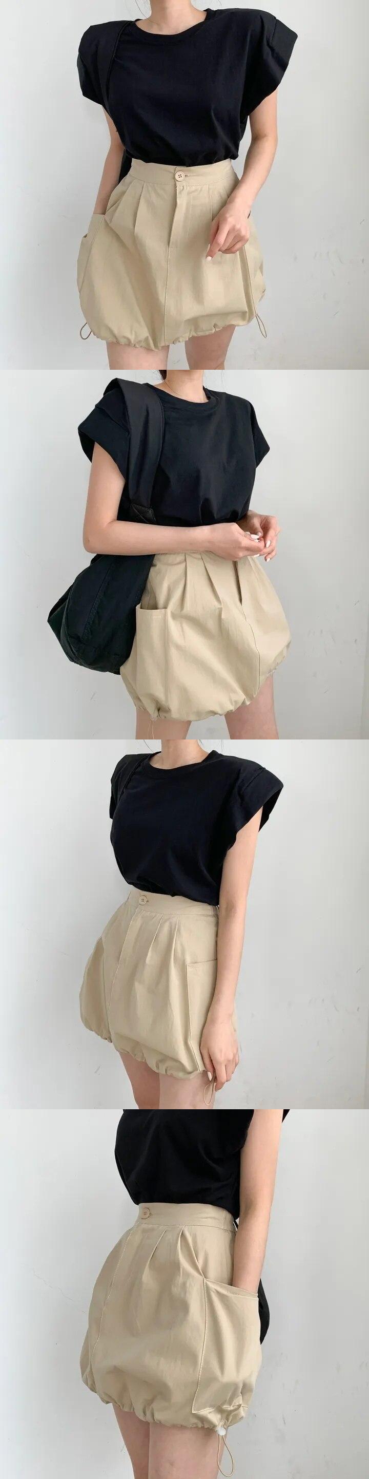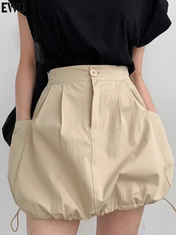 [EWQ] 裾巾着ミニスカートウエスト 1 ボタンポケットショートスカート夏潮ファルダス サマー 夏物