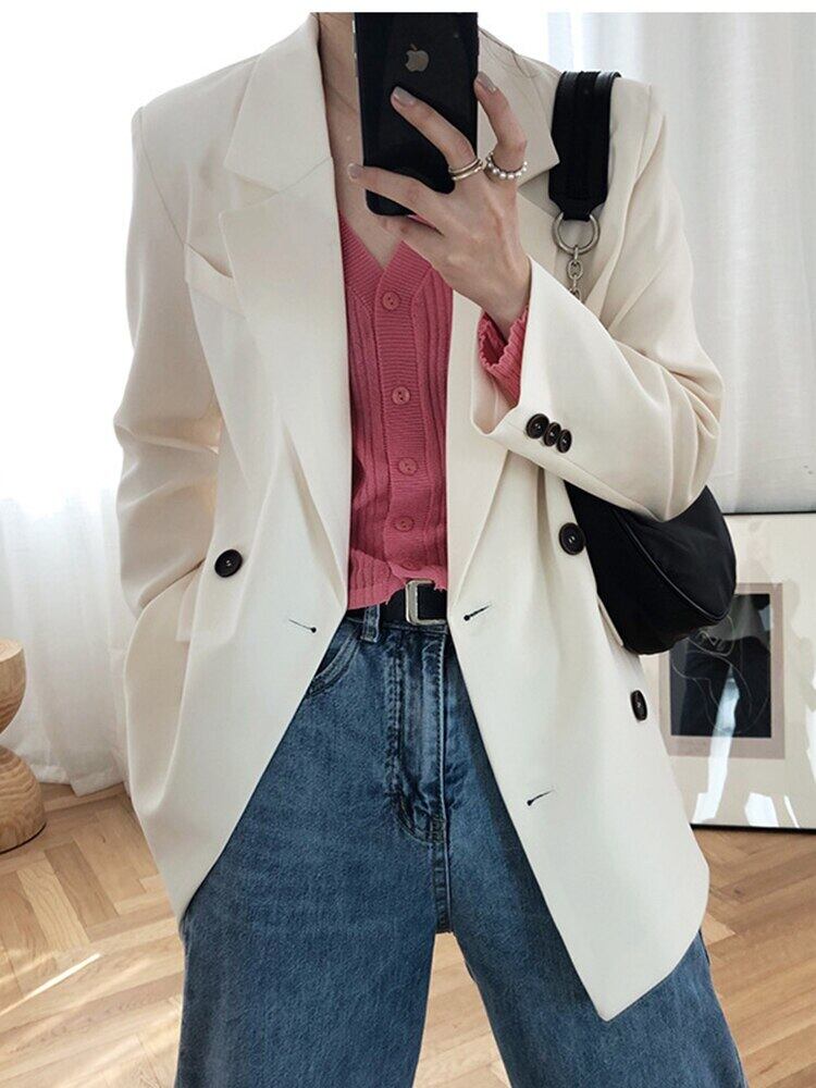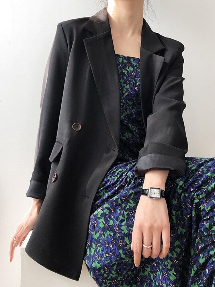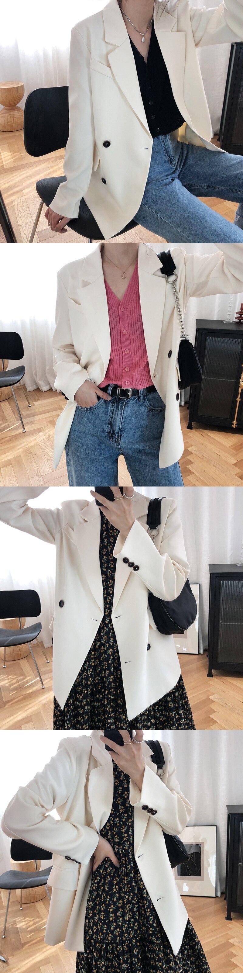 [EWQ] ブレザーコートボタン装飾長袖ルーズフィットスーツジャケット夏潮ポケットブレザー 16U141 ロング サマー 夏物