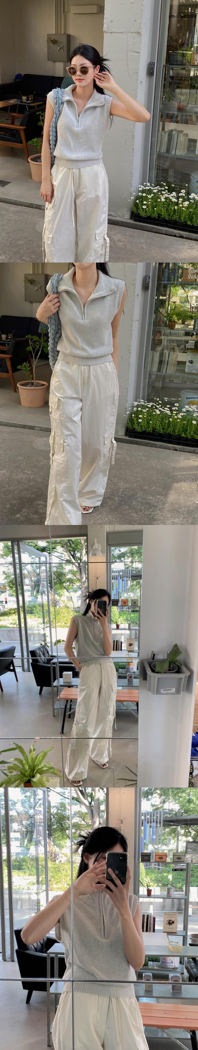 [EWQ] ジッパー装飾ニットベストラペルノースリーブ弾性タンクトップ夏潮 U669 エラスティック 伸縮 サマー 夏物