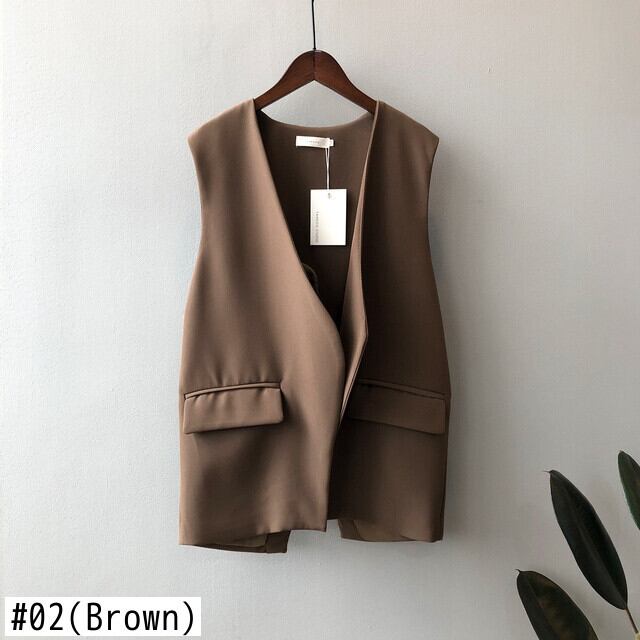 [EWQ] バックイレギュラー分割オフィスレディスーツベスト V ネックルーズノースリーブジャケット夏潮オープンステッチトップ サマー 夏物 Vネック 会社 学校 通勤や通学にも