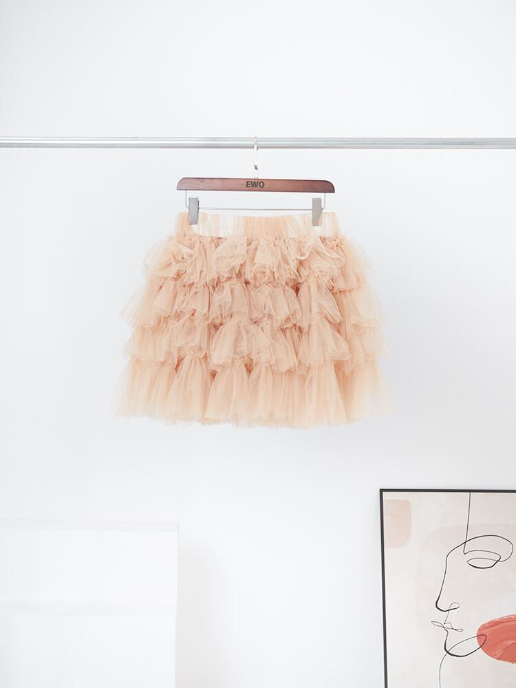 [EWQ] ミニメッシュスカートセクシー弾性ウエストフリルティアードパッチワークショートスカート夏段 Faldas 875 レッド エラスティック 伸縮 サマー 夏物
