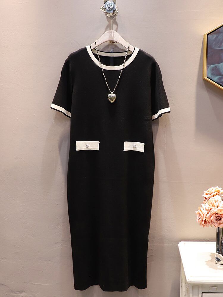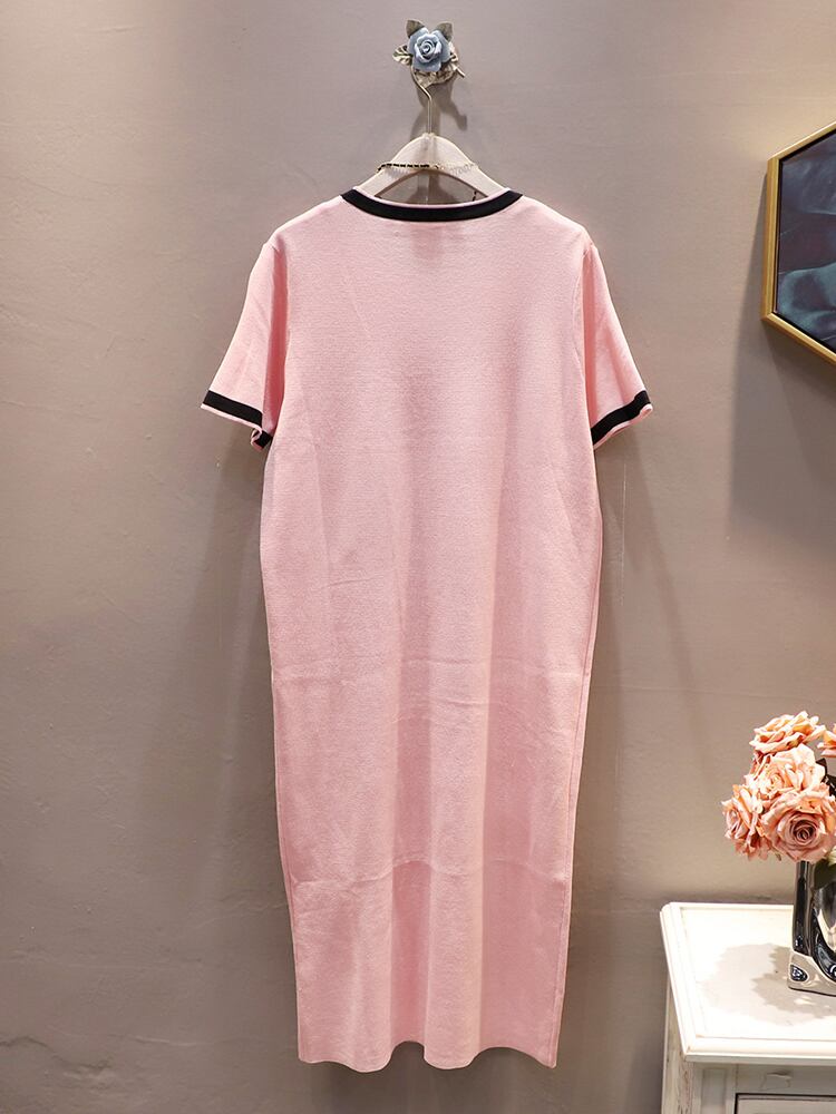 [EWQ] O ネックルーズドレスボタン装飾パッチワークコントラストドレス夏潮 Vestido サマー 夏物 Oネック