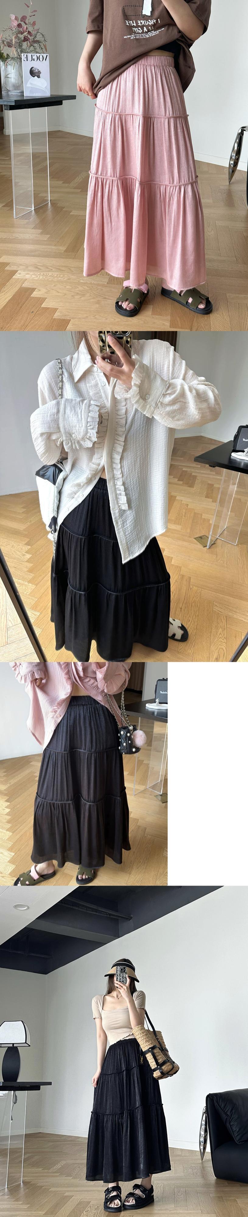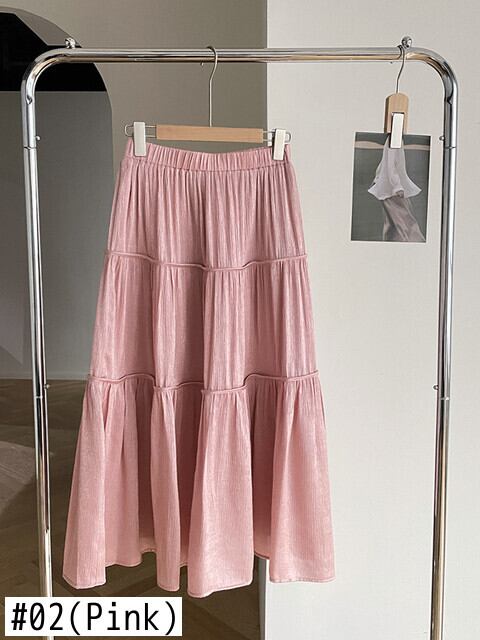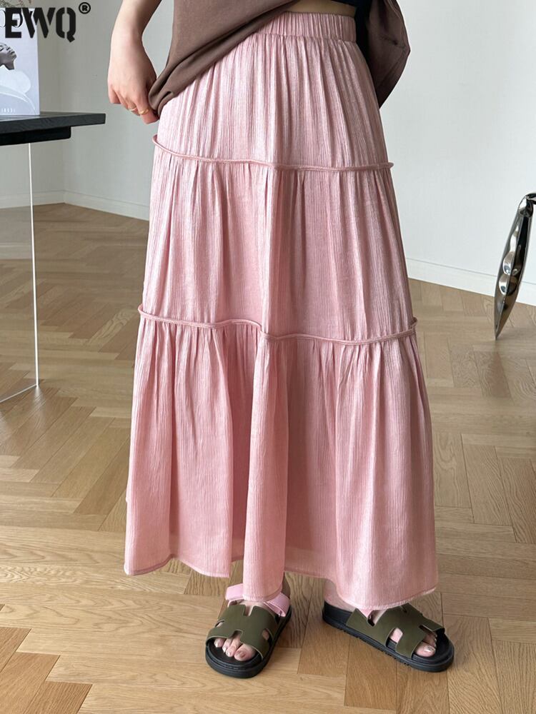 [EWQ] 弾性ウエストピンクパッチワーク A ラインスカートプリーツ甘いミッドカーフスカート夏潮ファルダス 770 エラスティック 伸縮 大人ガーリー スウィート キュート カジュアル サマー 夏物 Aライン
