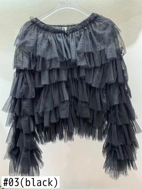 [EWQ] オープンステッチ メッシュ シャツ レディース ティアード ガーゼ スプライシング フリル 透視長袖 秋 薄手 トップス 16Y7011 ロング レッド オータム 秋物