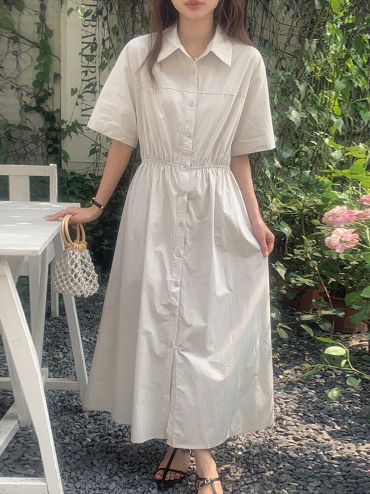 [EWQ] ミニマリストシングルブレストシャツドレス半袖サマータイドラペルドレス Vestidos ショート ハーフスリーブ 夏物