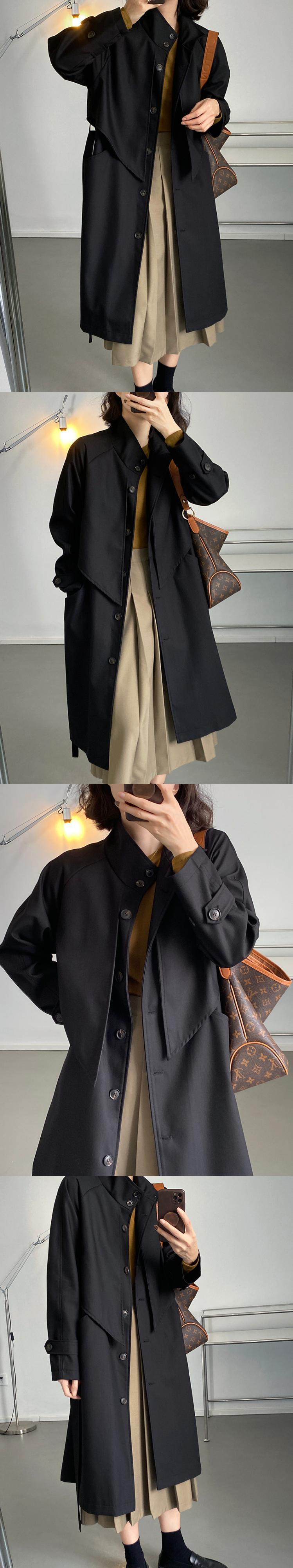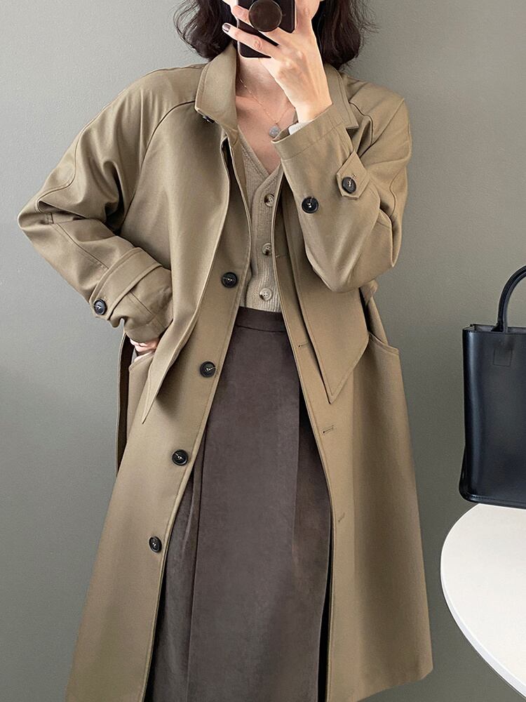 [EWQ] 気質シングルブレストラペルオーバーサイズトレンチコートベルト付きウインドブレーカー春秋 16R1998 スプリング 春物 オータム 秋物 ハーネス