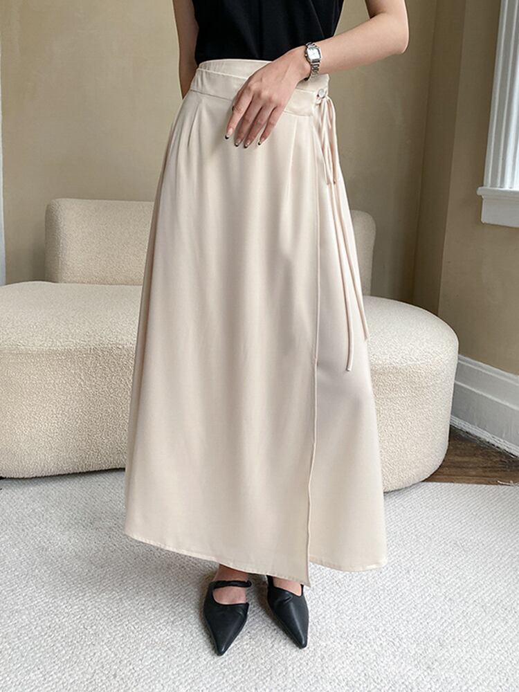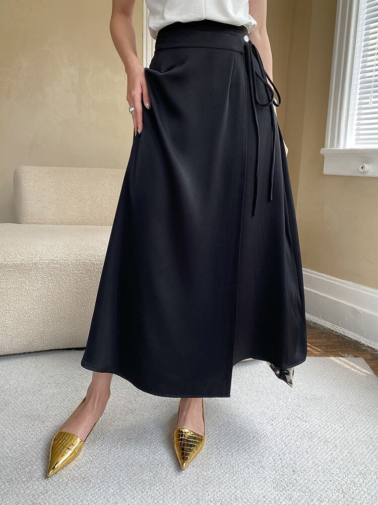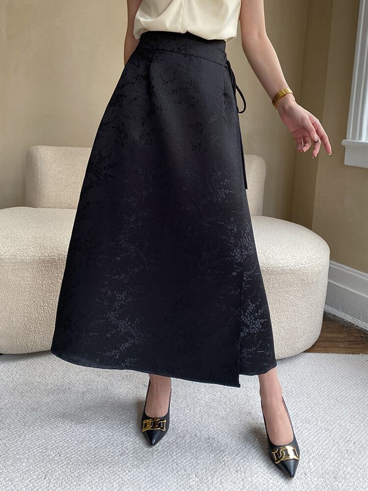 [EWQ] リボンウエストスカートジャカード気質ミッドカーフスカート夏非対称ファルダス 571 サマー 夏物