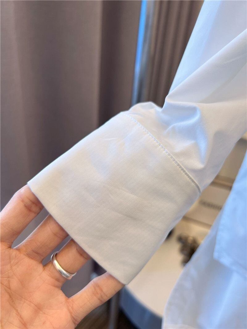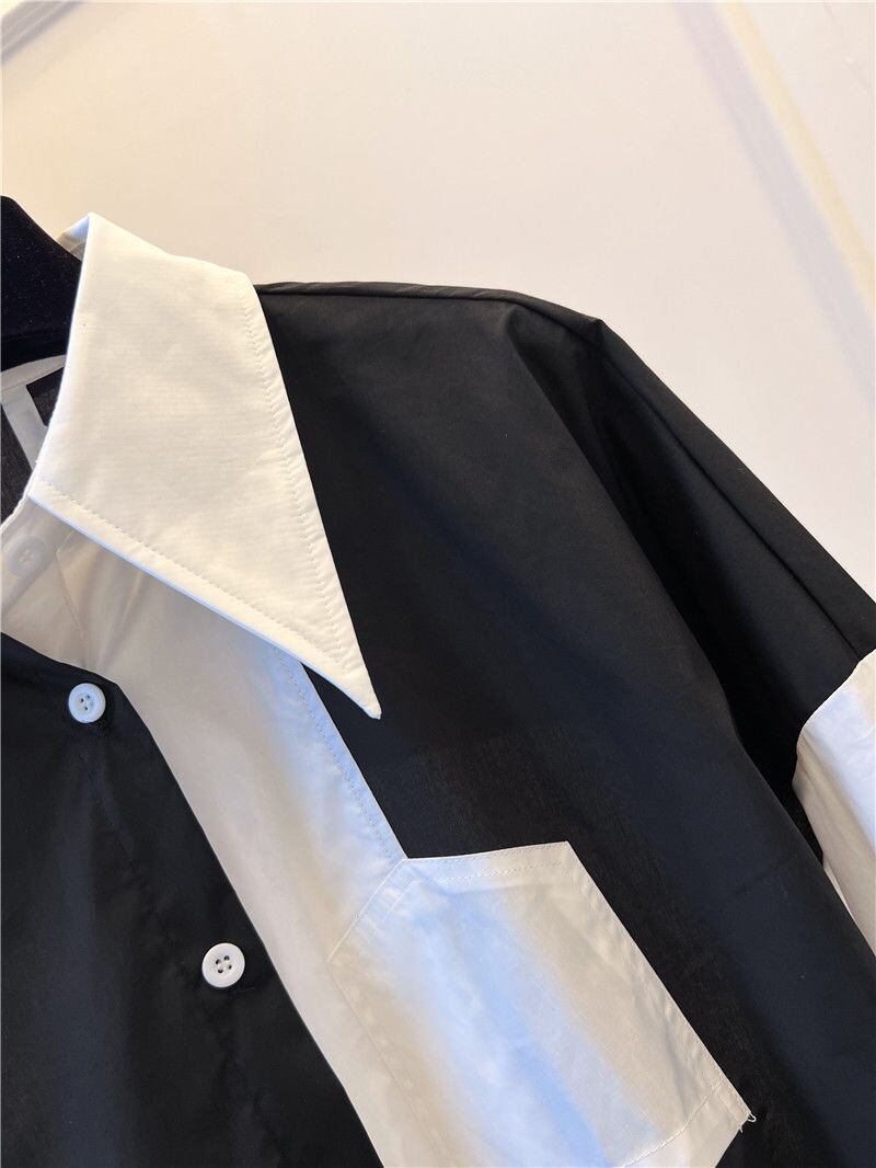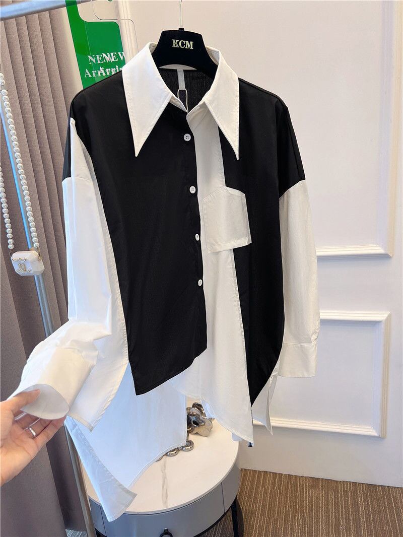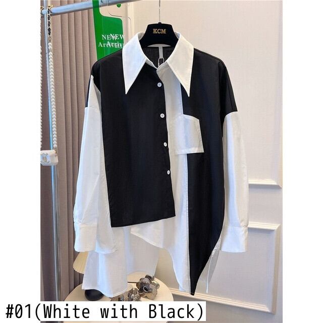 [EWQ] 非対称パッチワークシャツ長袖フェイクポケットシングルブレストルーズ秋潮トップ 922 ロング オータム 秋物