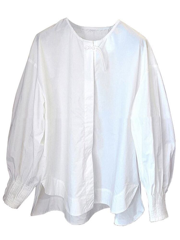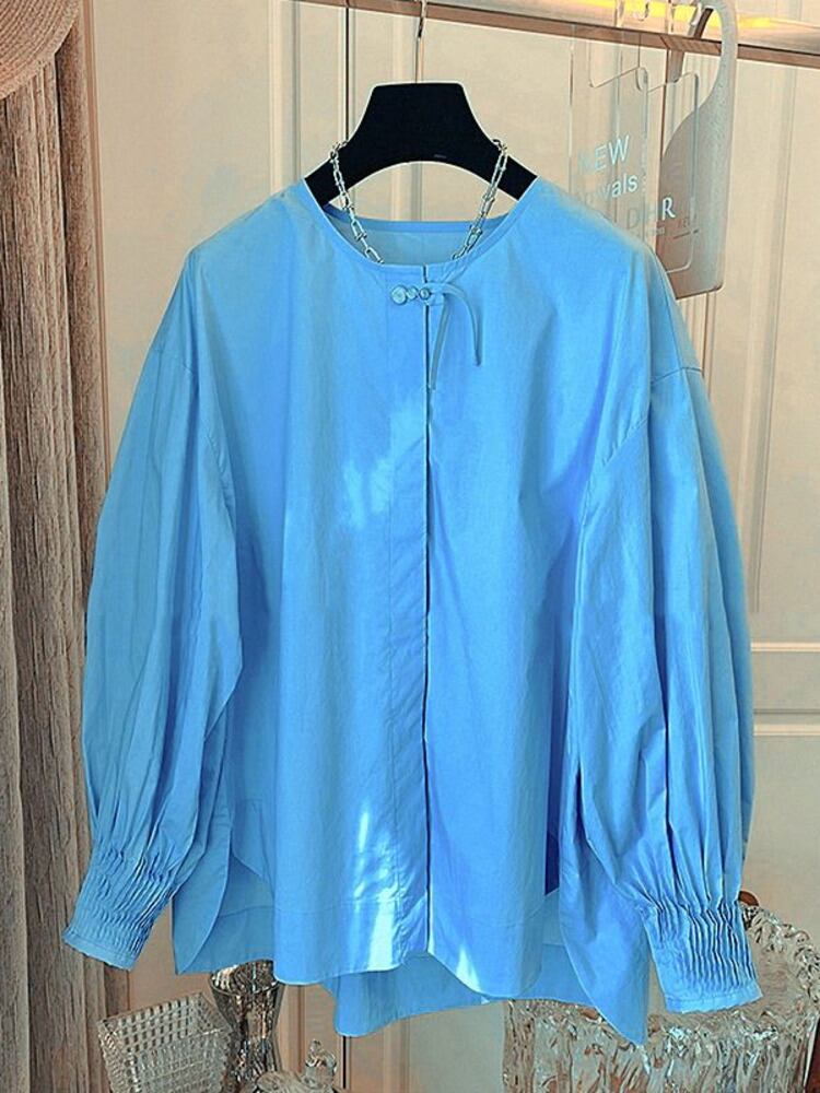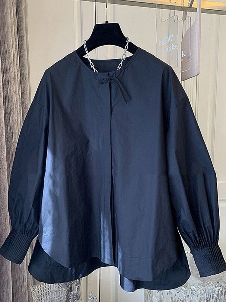 [EWQ] プリーツランタンスリーブシャツビッグサイズルーズシングルブレストネクタイブラウス秋潮トップ 122 オータム 秋物