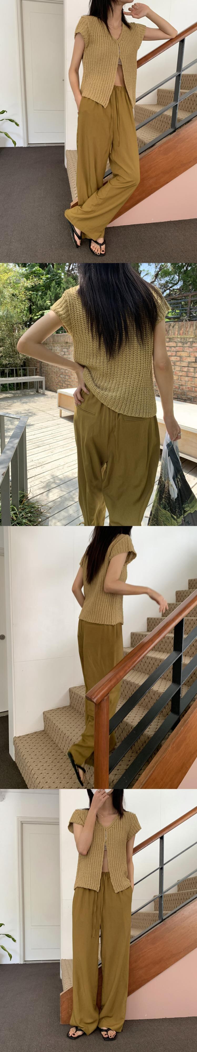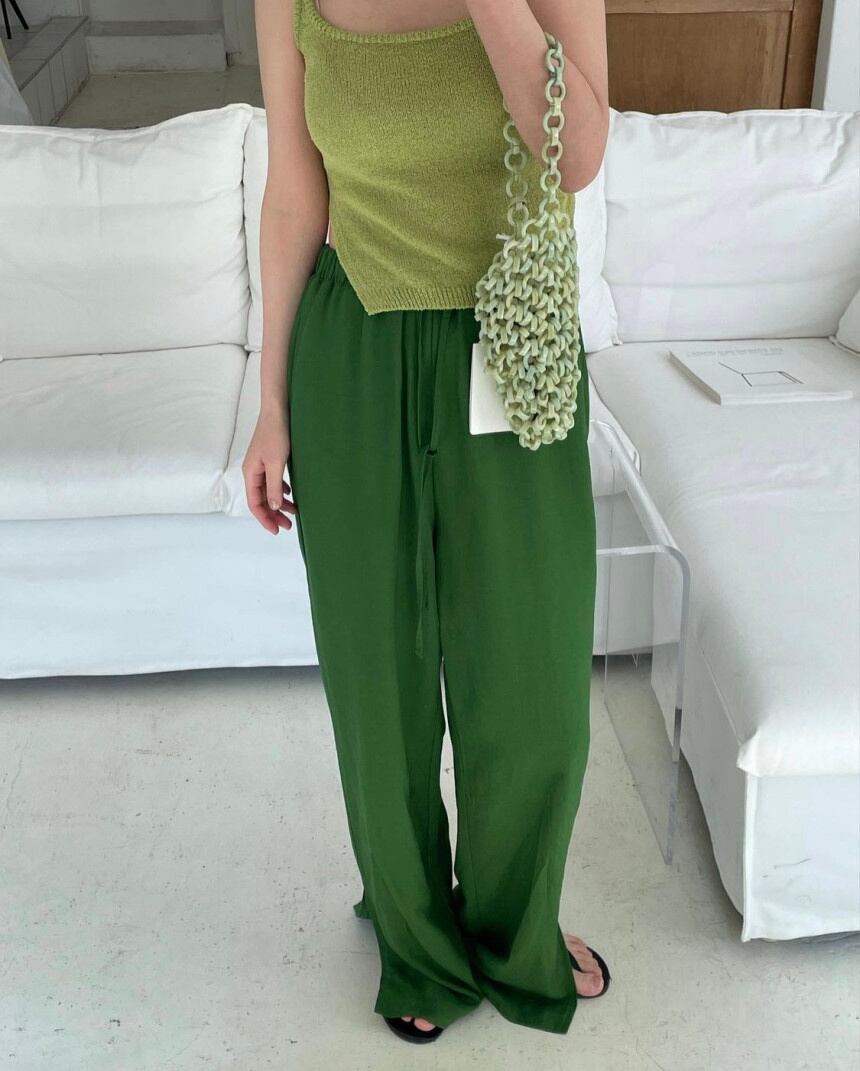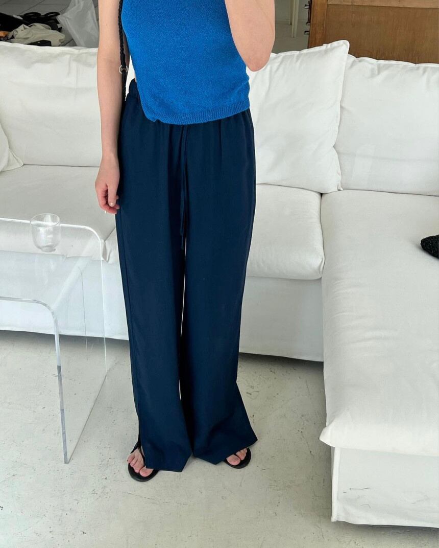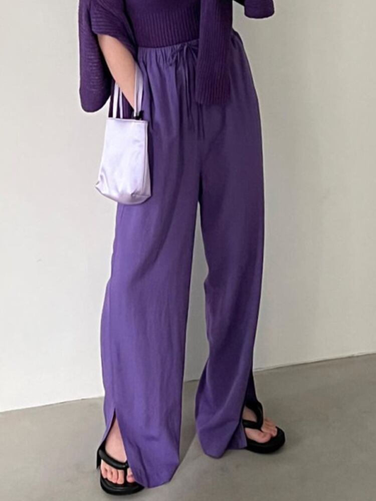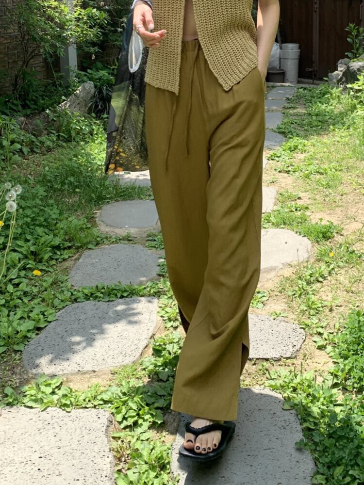 [EWQ] 裾スプリットワイドレッグパンツルーズソリッドカラーポケットウエスト巾着ズボン夏潮 サマー 夏物 ワイドパンツ