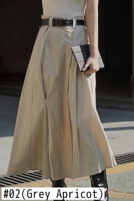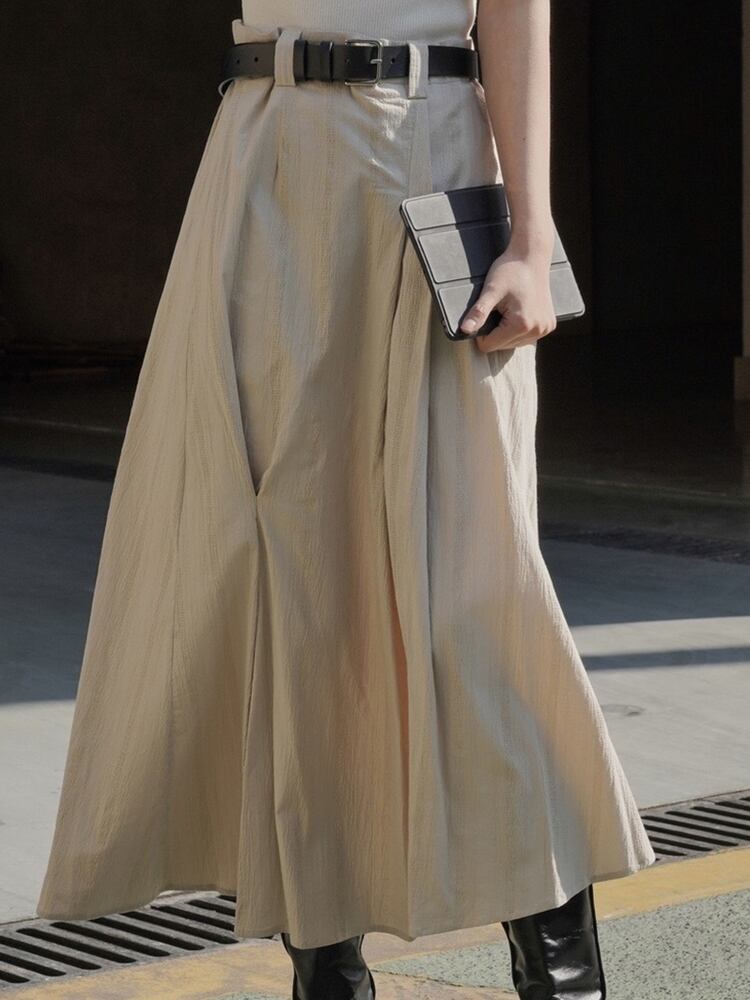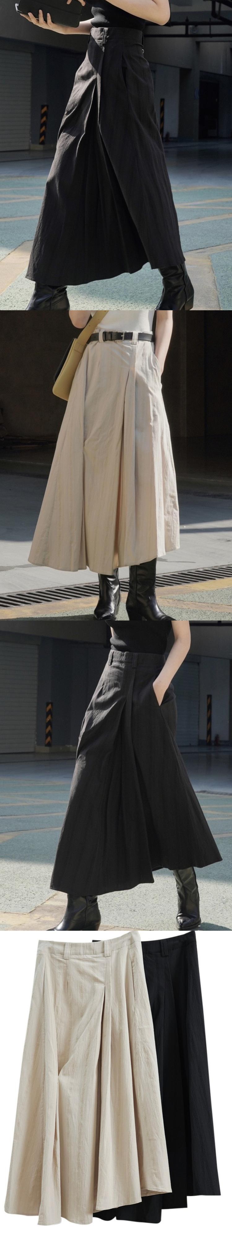 [EWQ] 不規則 A ラインスカートルーズアプリコットウエストプリーツミッドカーフスカート夏潮ファルダス 62 サマー 夏物 Aライン