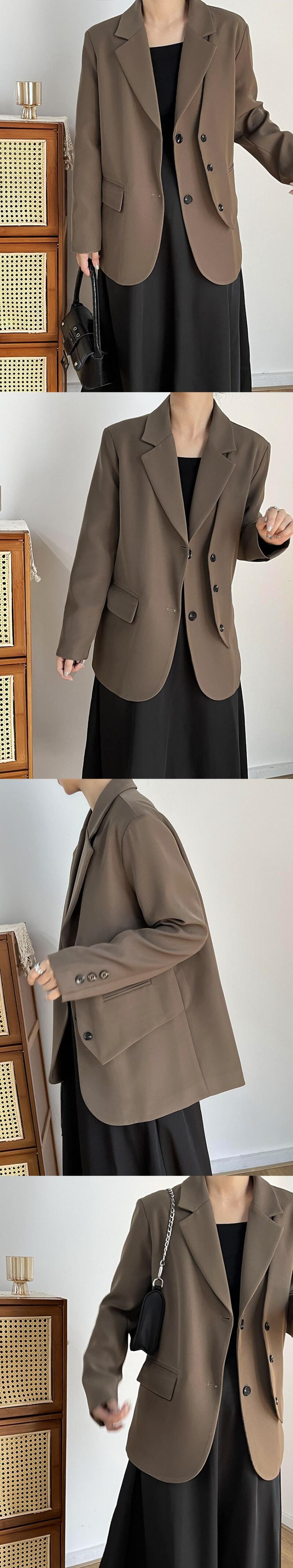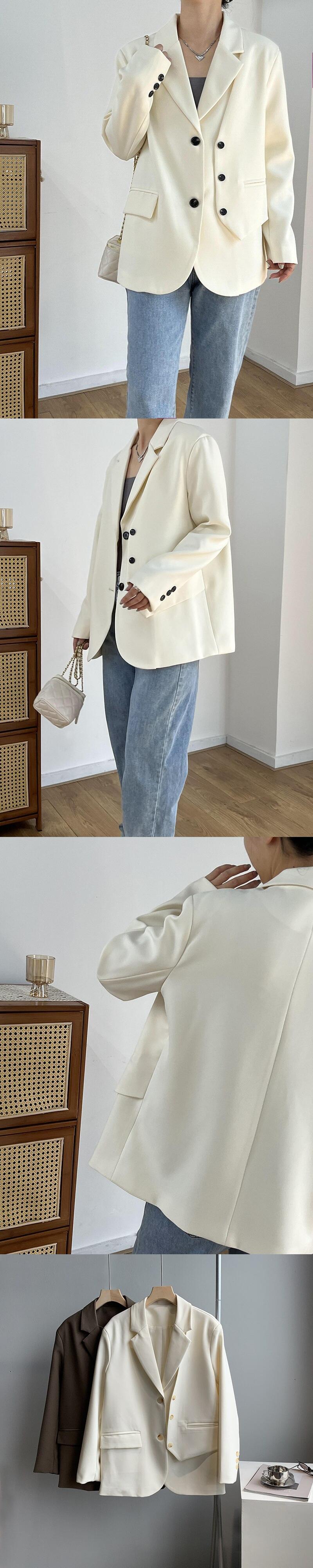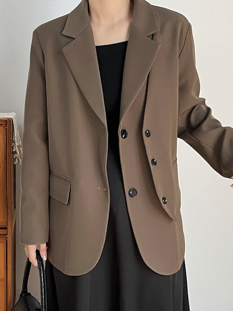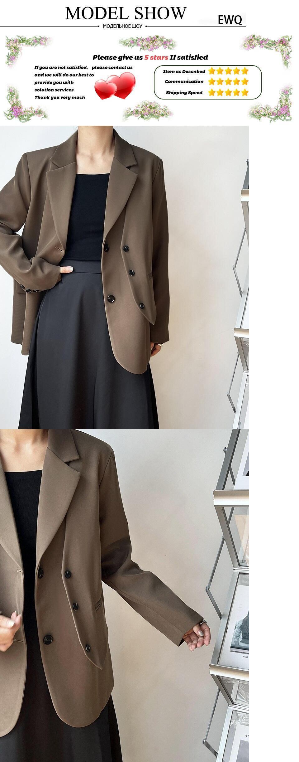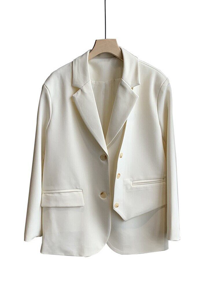 [EWQ] フェイクツーピース不規則ブレザーコート夏潮長袖ルーズフィットダブルブレストスーツジャケット 16U406 ロング サマー 夏物