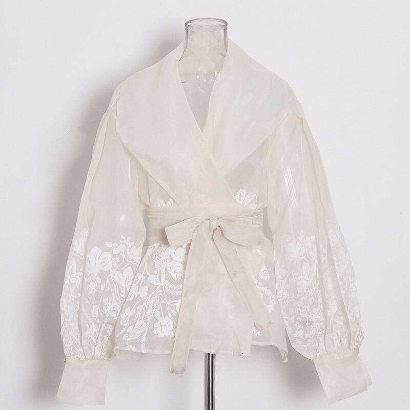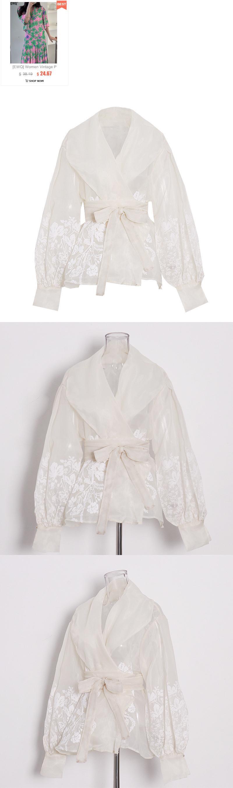 [EWQ] バブルスリーブレースアップシャツ甘い気質ラペルジャカードレディースブラウス秋トップ 16U1243 大人ガーリー スウィート キュート カジュアル オータム 秋物