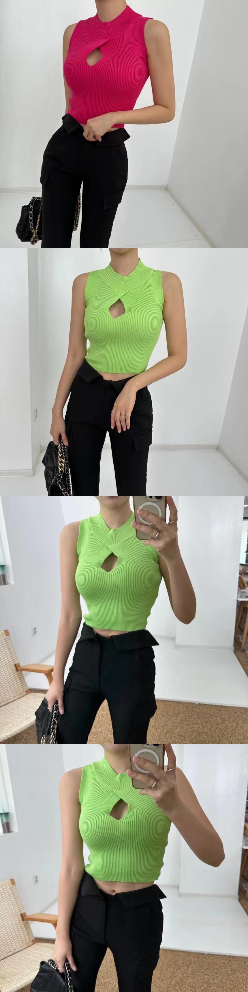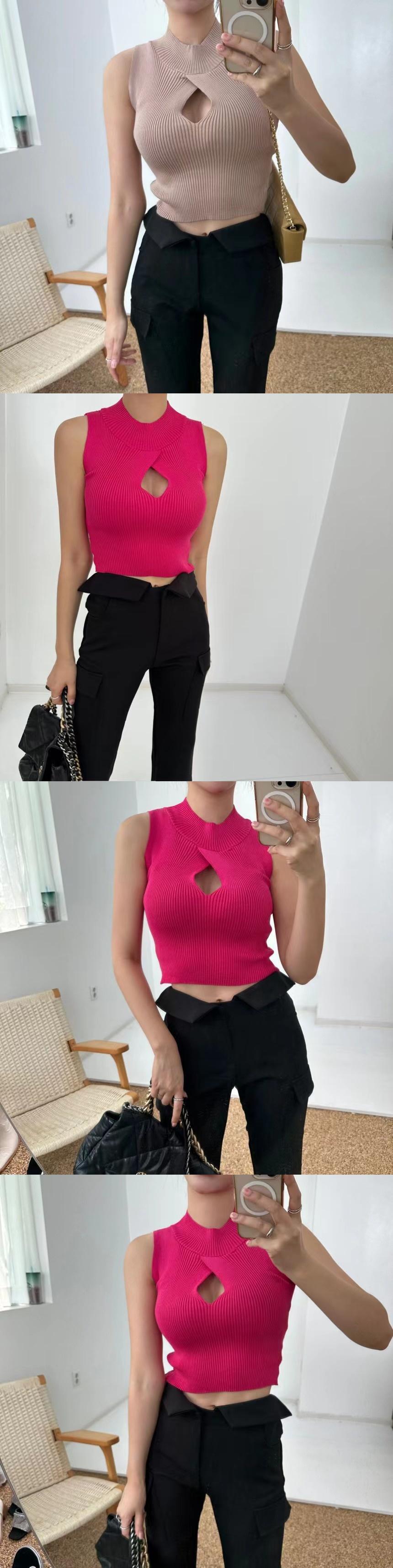 [EWQ] O ネック中空アウトセーターベストノースリーブ弾性ニットプルオーバー夏潮ノースリーブニットトップ エラスティック 伸縮 サマー 夏物 Oネック