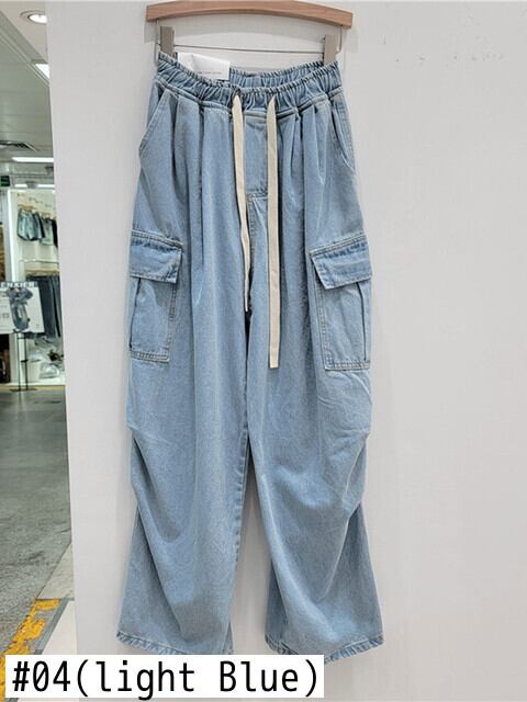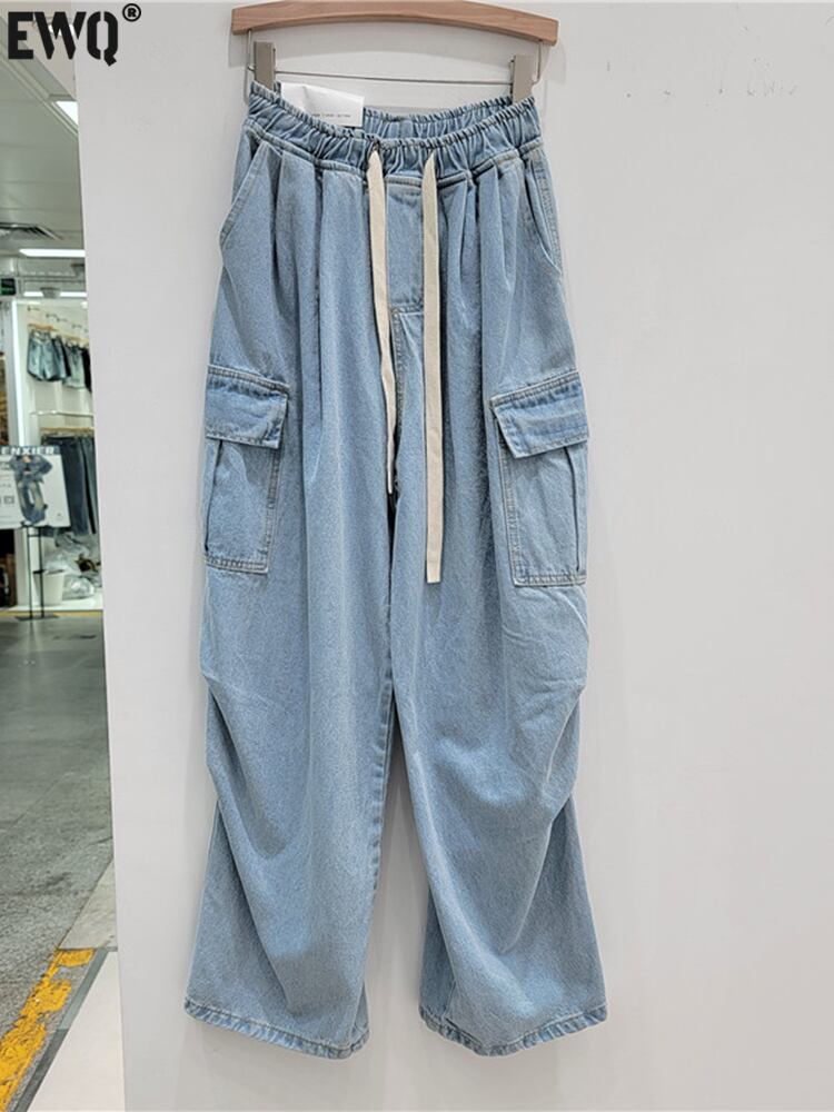 [EWQ] ストリート巾着ビッグポケット装飾デニムパンツルーズワイドレッグパンツ夏トレンド O125 サマー 夏物 ワイドパンツ