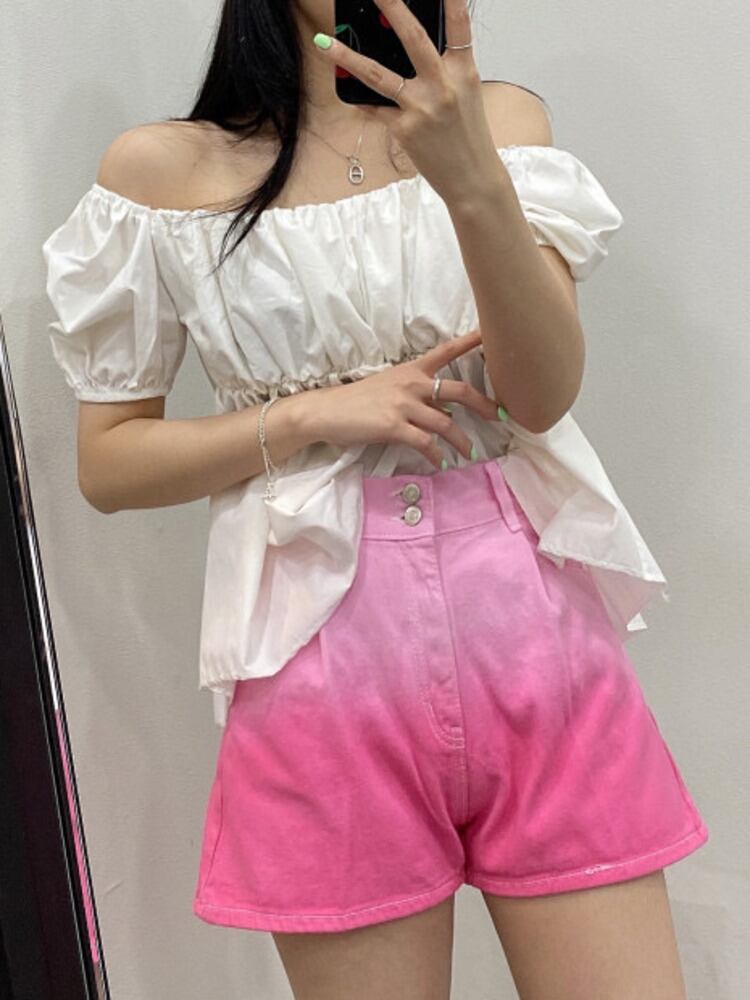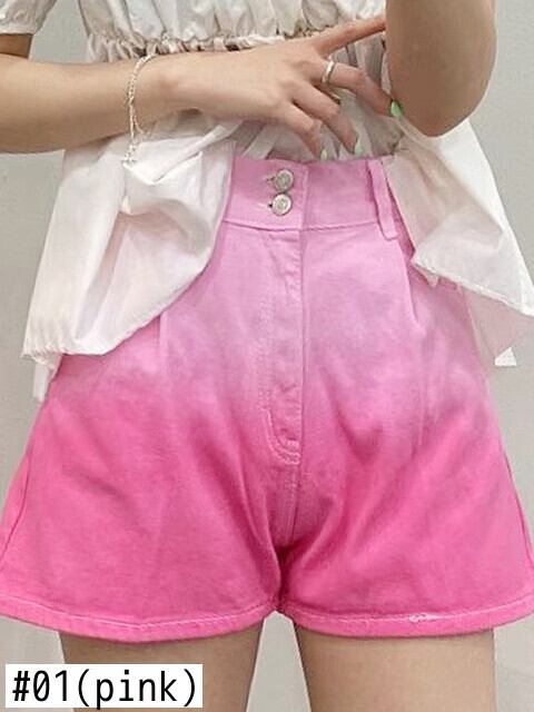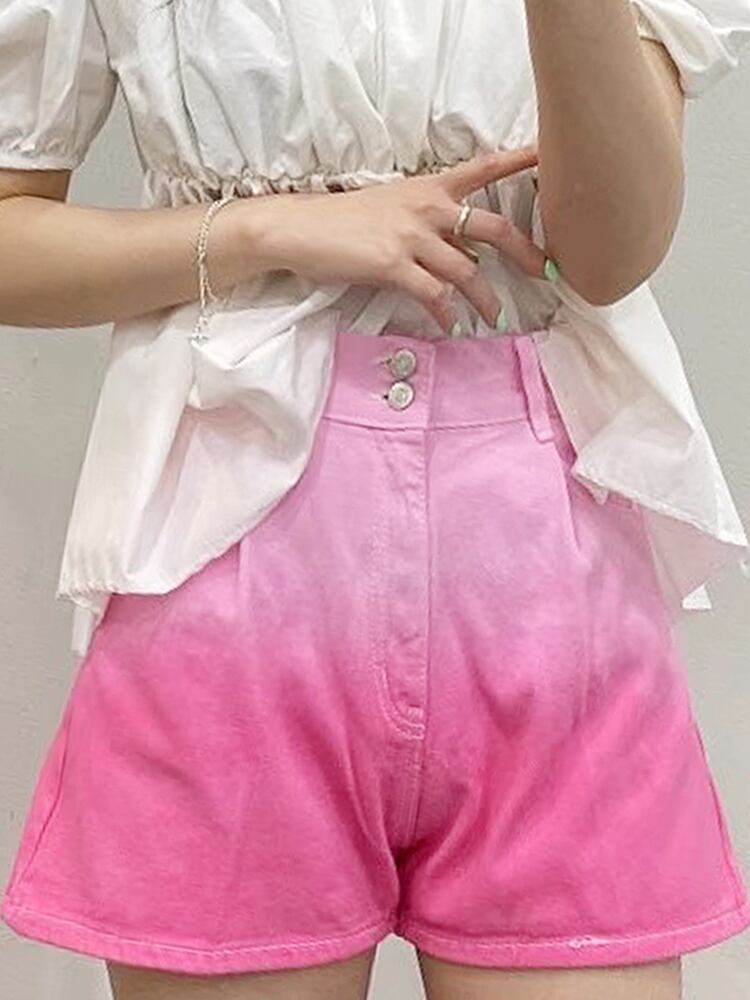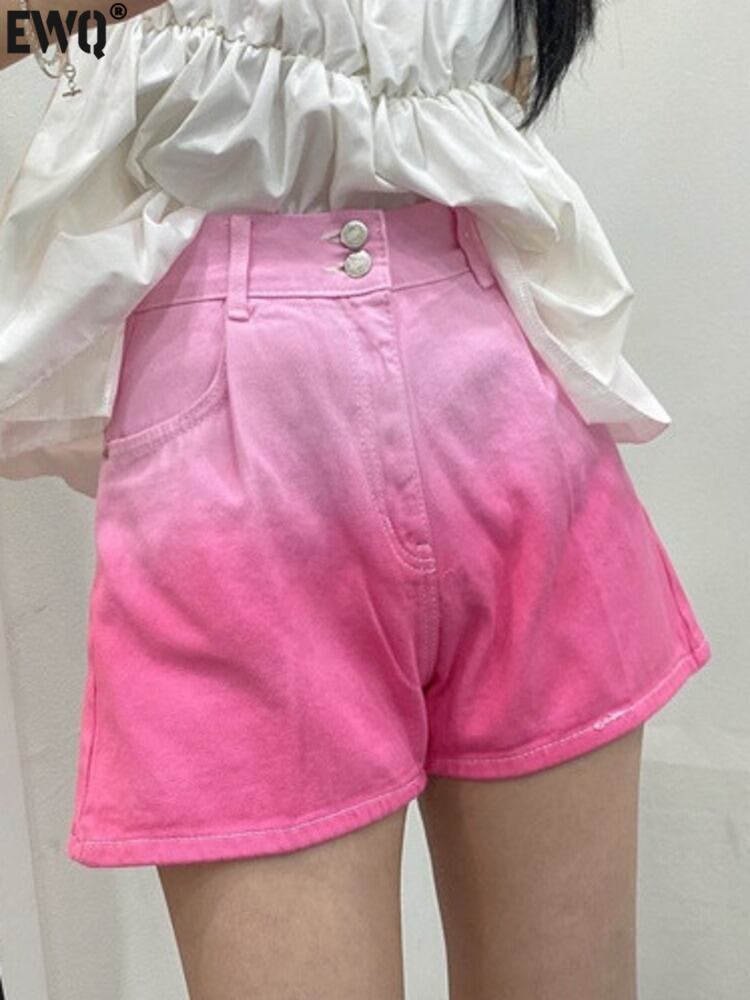 [EWQ] グラデーションデニムショートパンツストリートウェア 2 つボタンオールマッチショートジーンズ夏シックボトム サマー 夏物 ショーツ ブルマー