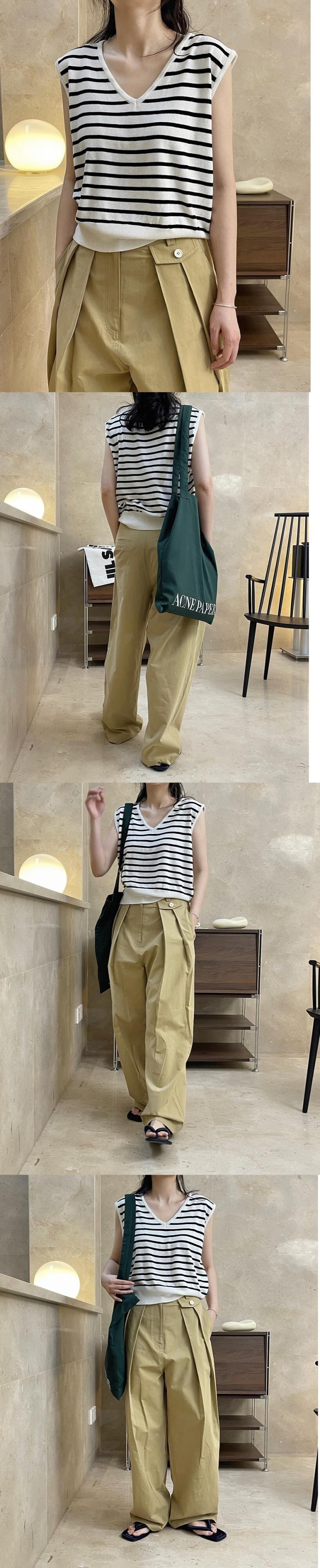 [EWQ] だらしいストライプ V ネック ノースリーブ スリム ベーシック ベスト レディース レジャー お出かけ タンク 夏 潮 ファッション 23A620 サマー 夏物 Vネック