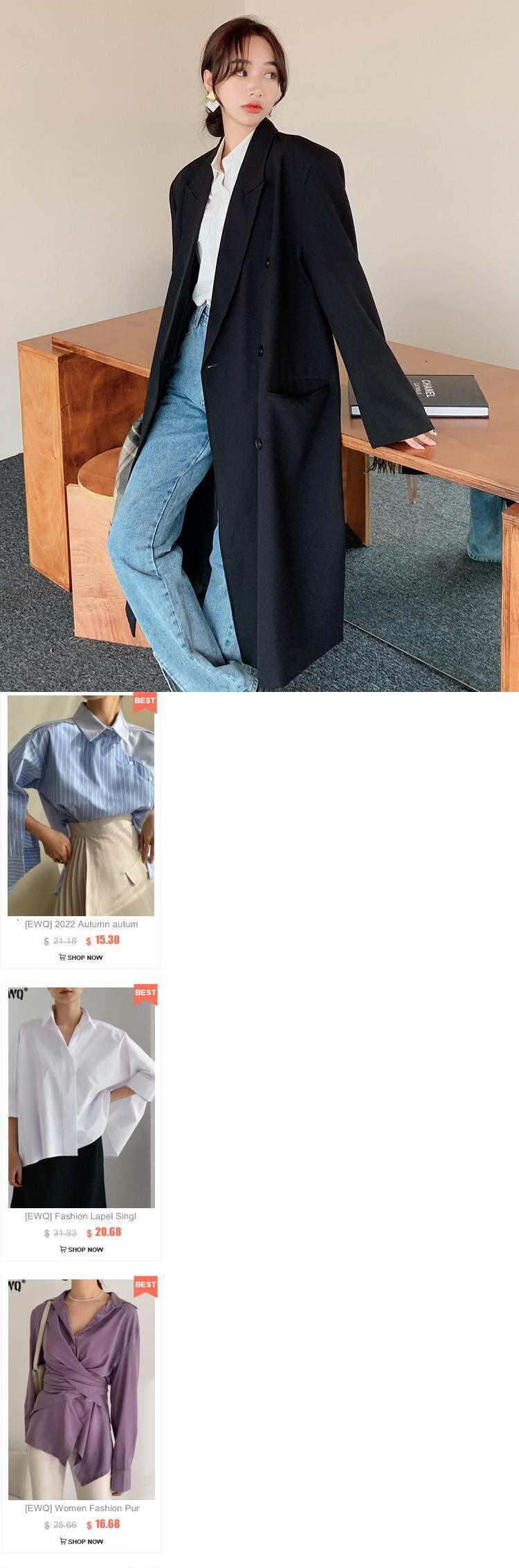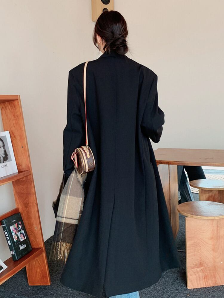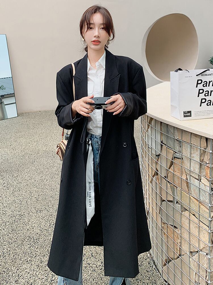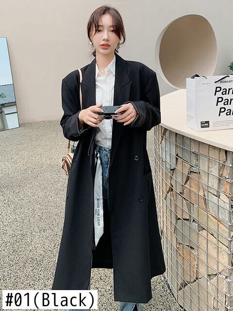 [EWQ] 気質黒ブレザーコートルーズダブルブレストロングスーツジャケット秋ブレザー 16U989 ブラック オータム 秋物