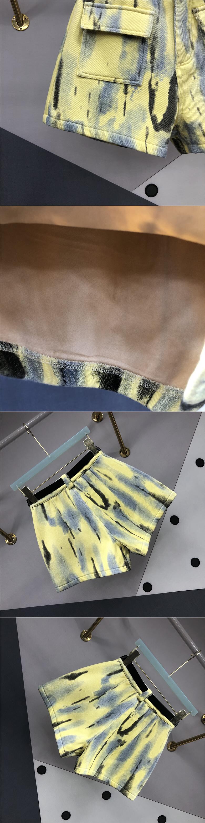 [EWQ] ストリートイエロータイダイデニムショートパンツポケットルーズオールマッチショートジーンズ夏トレンド サマー 夏物 ショーツ ブルマー