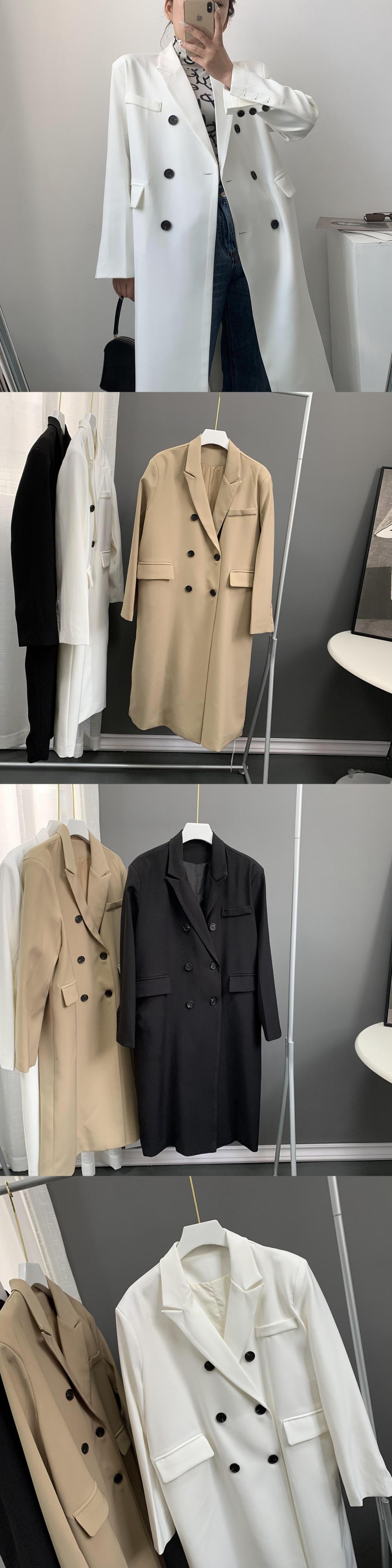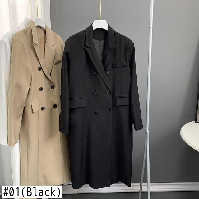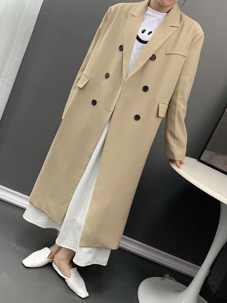 [EWQ] サマーブレザーコートダブルブレストタイドホワイトビッグサイズスーツジャケット長袖 6U401 ロング 夏物