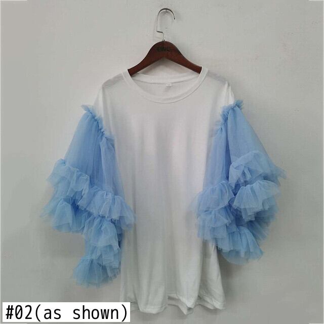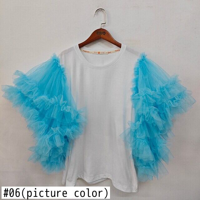 [EWQ] フリル半袖コントラストカラー Tシャツトップ夏ルーズ Tシャツヨーロッパ服コットン Tシャツトップス 20 色 16U211 ショート ハーフスリーブ サマー 夏物 ヨーロピアン