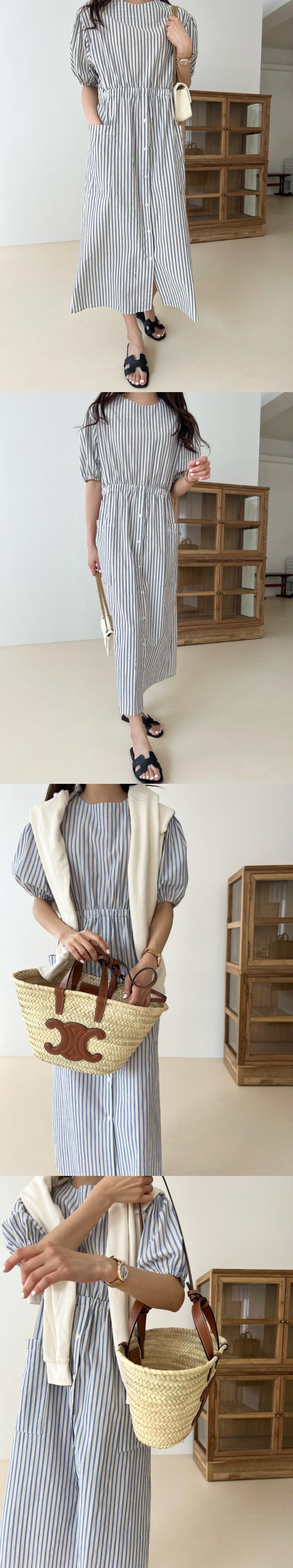 [EWQ] ストライプシャツドレスシングルブレストポケットパッチワークランタンスリーブドレス夏潮 Vestido サマー 夏物
