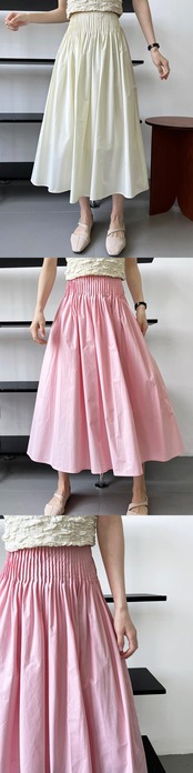 [EWQ] 甘いピンク A ラインスカートウエスト弾性プリーツ気質スカート秋潮オールマッチ服 エラスティック 伸縮 大人ガーリー スウィート キュート カジュアル オータム 秋物 Aライン