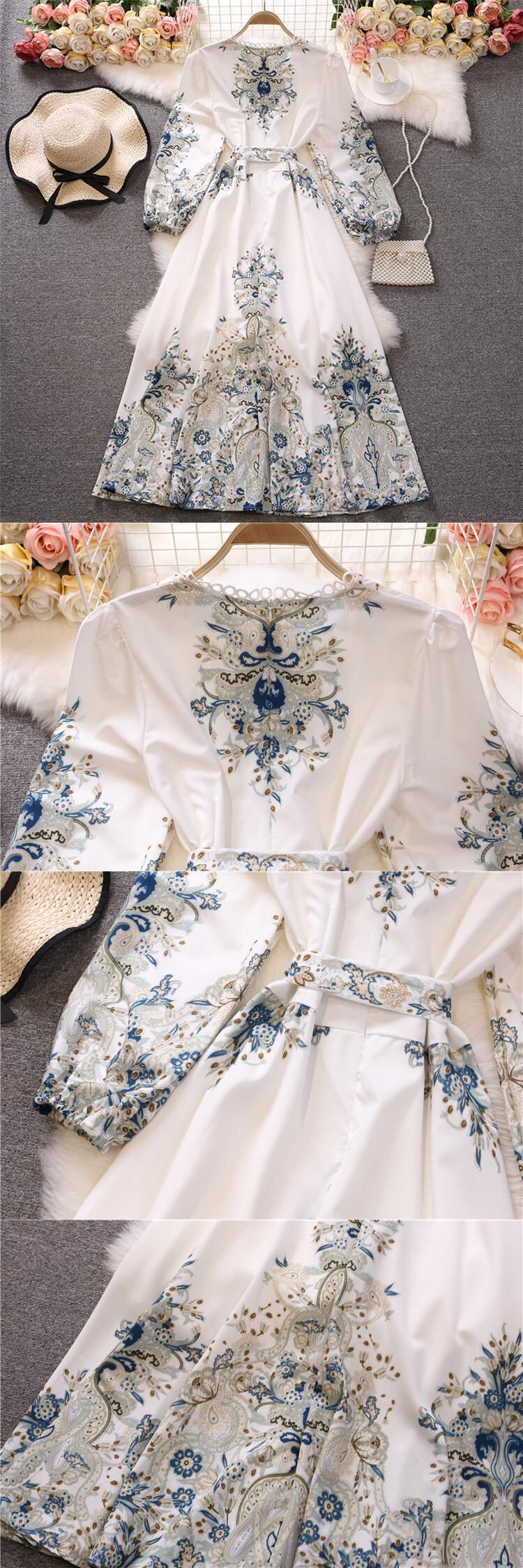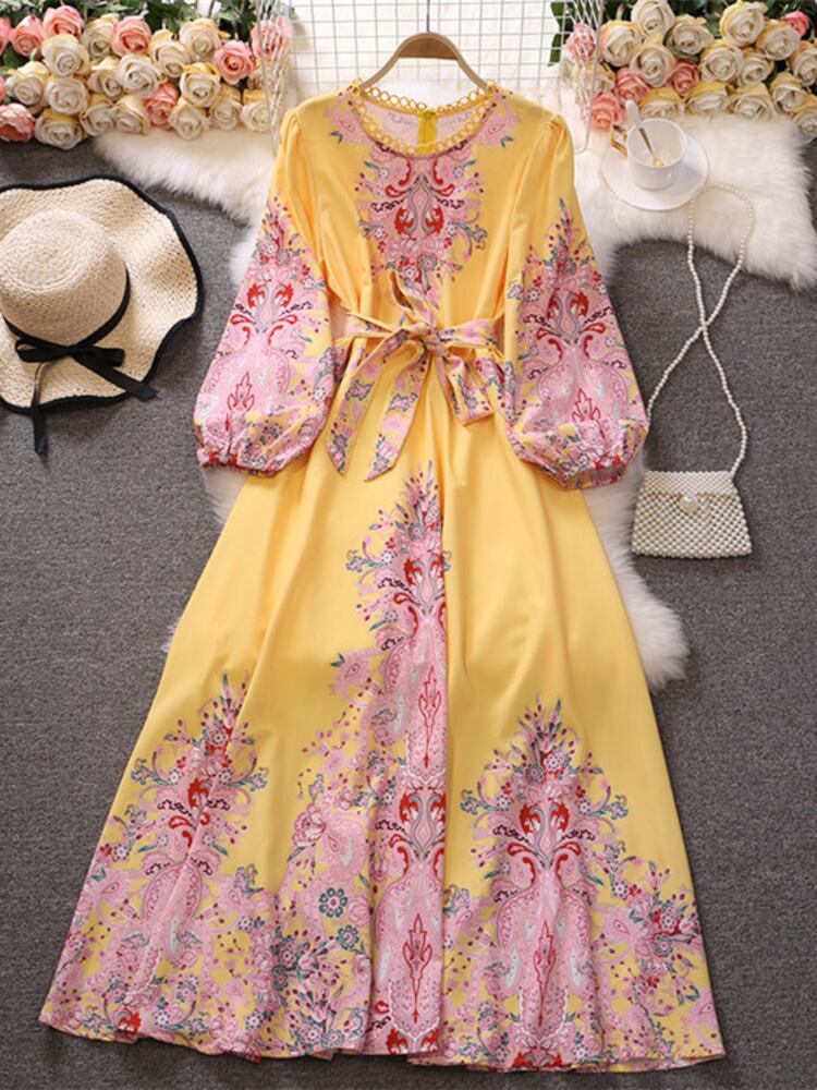 [EWQ] ピンクプリントレースアップドレスコントラストカラー甘いルーズ V ネックレッドドレス夏潮 Vestido 大人ガーリー スウィート キュート カジュアル サマー 夏物 Vネック