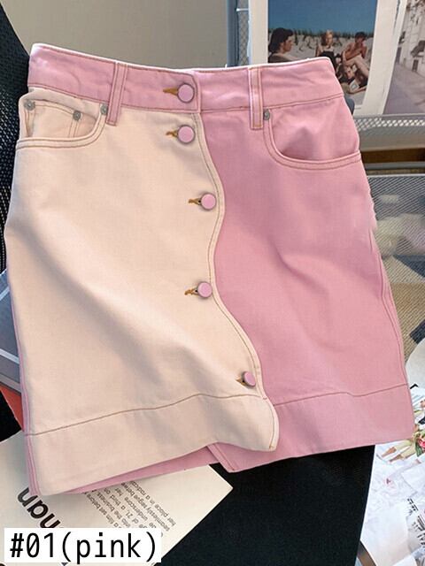 [EWQ] ストリート不規則コントラストカラーパッチワークミニデニムスカートウエストショートスカート秋 オータム 秋物