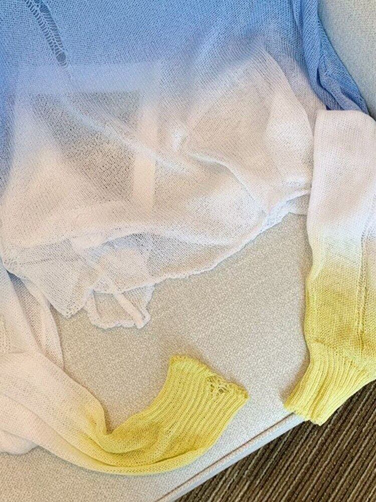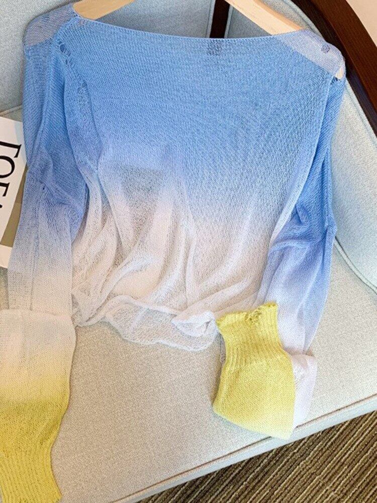 [EWQ] グラデーション 長袖 Tシャツ レディース コントラストカラー O ネック 大きいサイズ 秋 美しい 薄手 プルオーバー ニット ロング オータム 秋物 Oネック