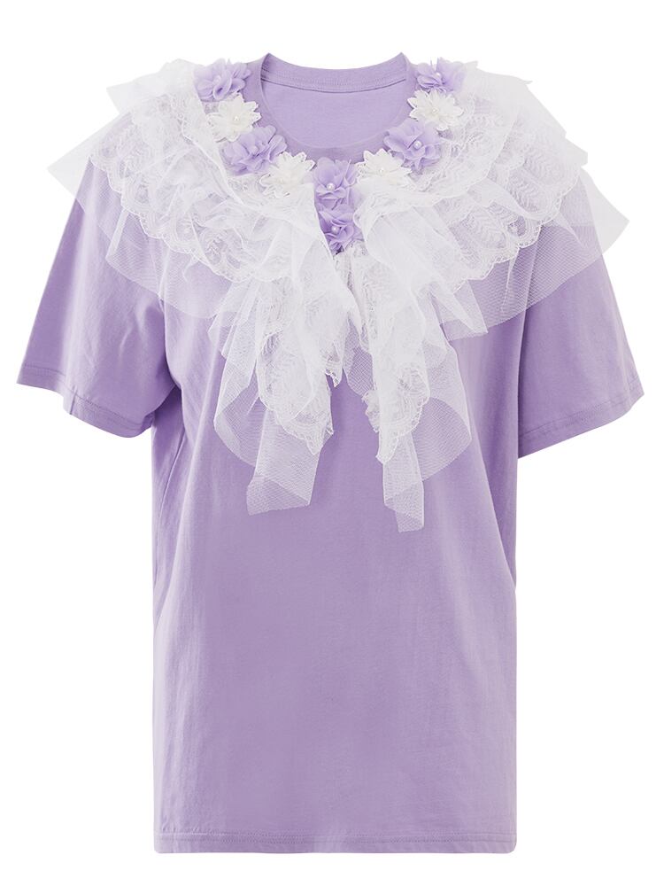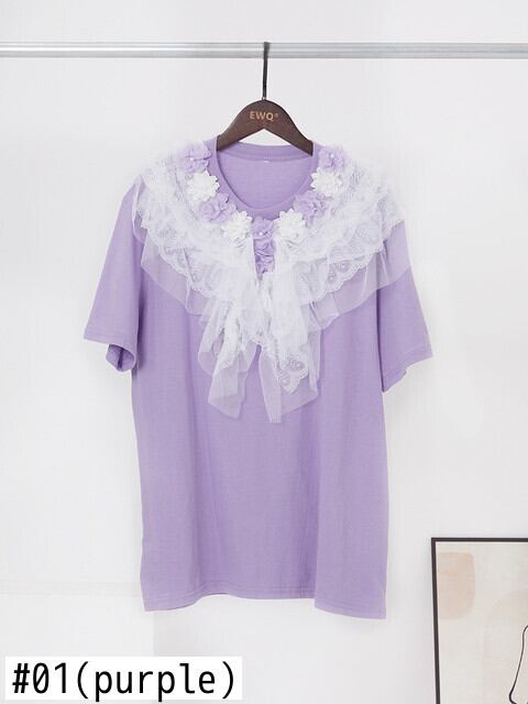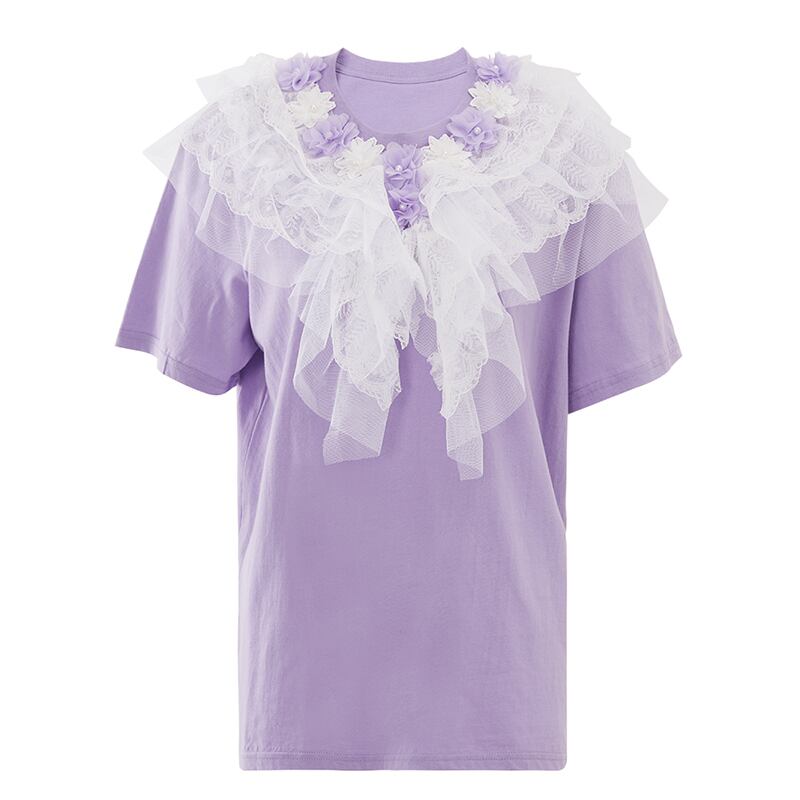 [EWQ] パープルルーズ Tシャツメッシュパッチワーク半袖コントラストカラー Tシャツトップ夏潮 Tシャツ 866 ショート ハーフスリーブ サマー 夏物