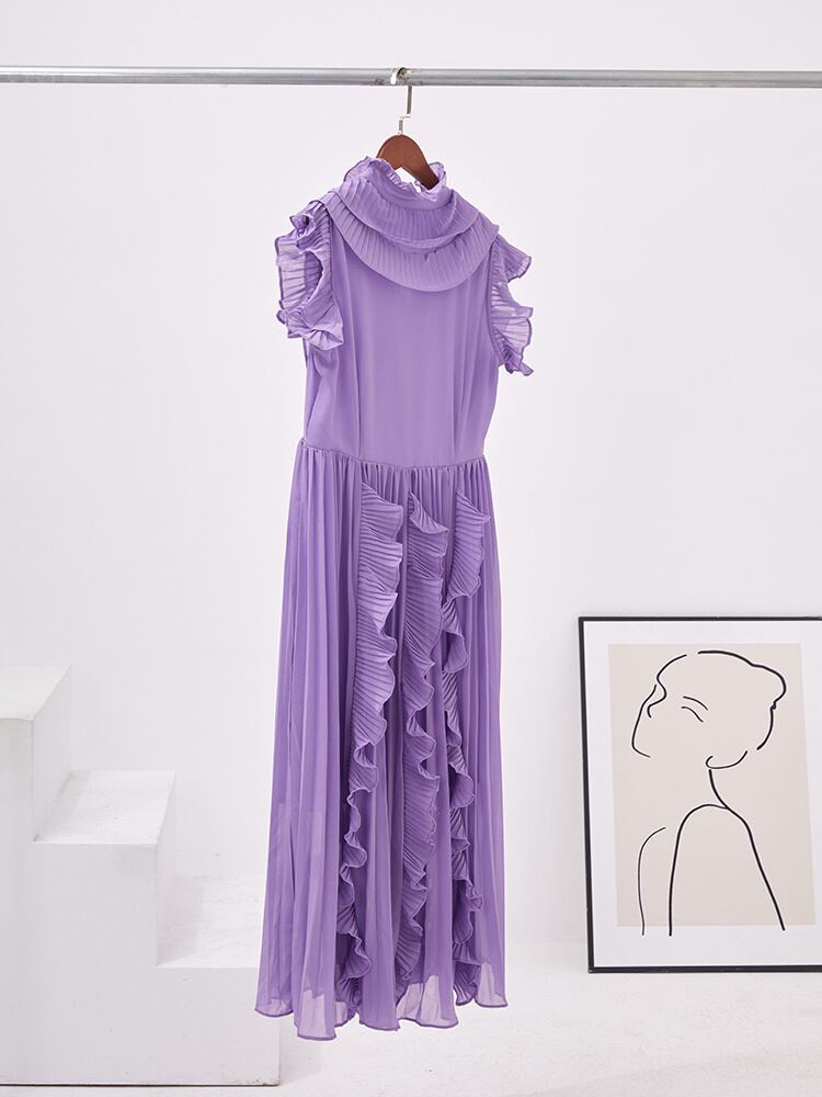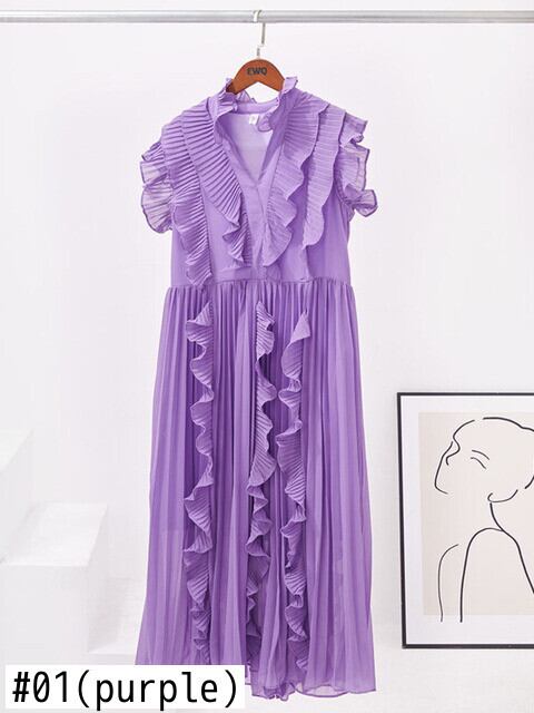 [EWQ] フリルパッチワーク半袖 Vestido パーティードレス潮夏甘い緩い美しい紫色ローブ ショート ハーフスリーブ ラッフル 大人ガーリー スウィート キュート カジュアル サマー 夏物 パープル