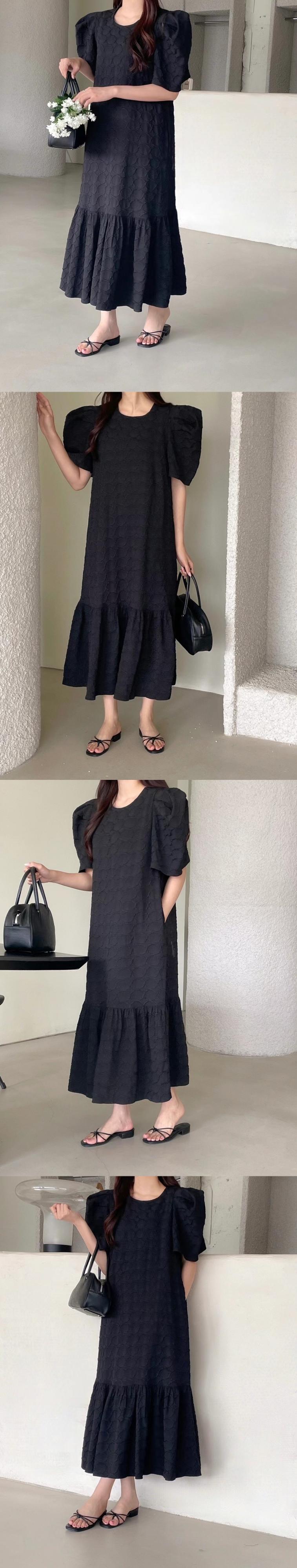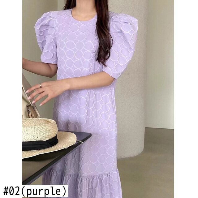 [EWQ] レディース ドレス フリル パッチワーク O-ネック パフ スリーブ ソリッド カラー ルーズ ウエスト ベスト 夏 サマー 夏物 ソリッドカラー