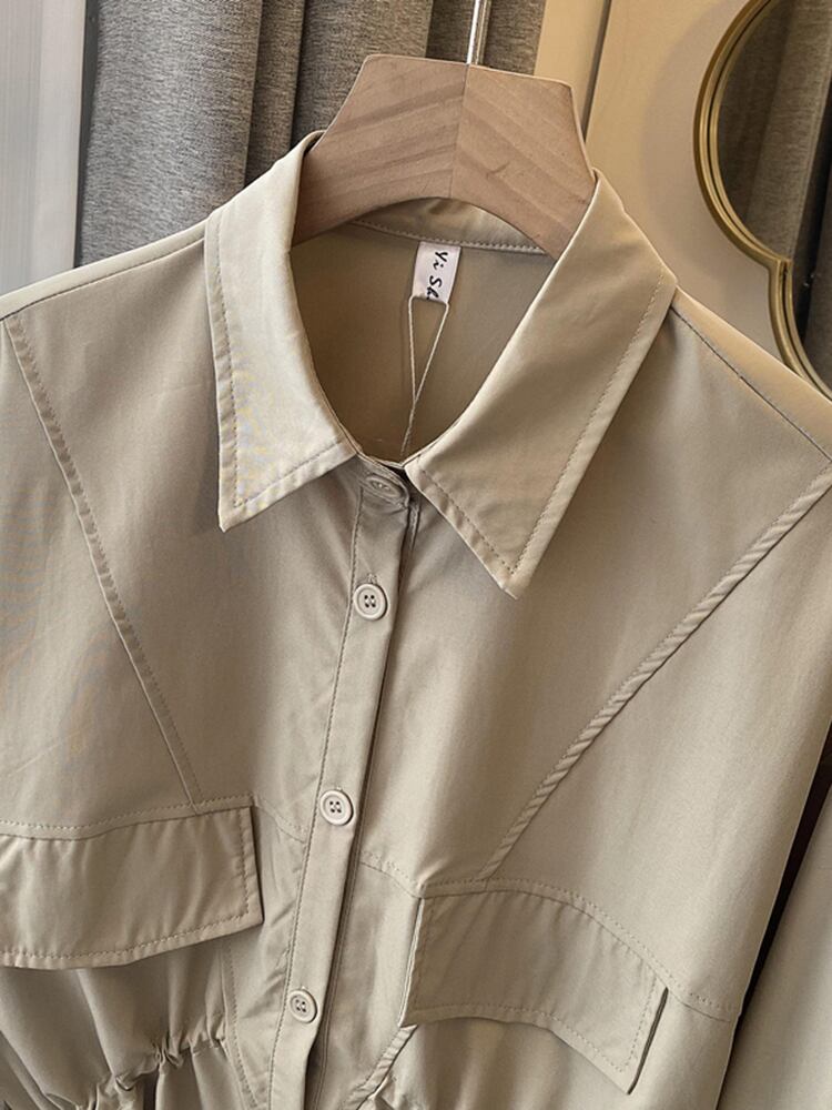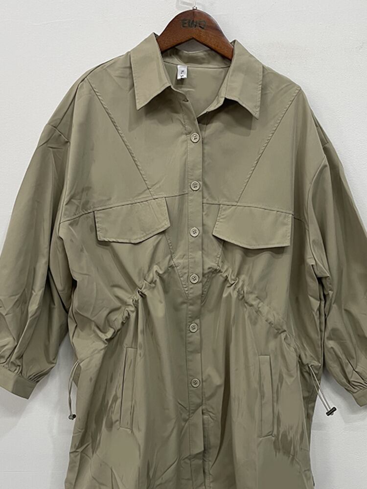 [EWQ] ビッグサイズ トレンチ コート アウター レディース 巾着 プリーツ 長袖 カーキ ウインドブレーカー ジャケット 秋潮 薄手 アウター ロング オータム 秋物