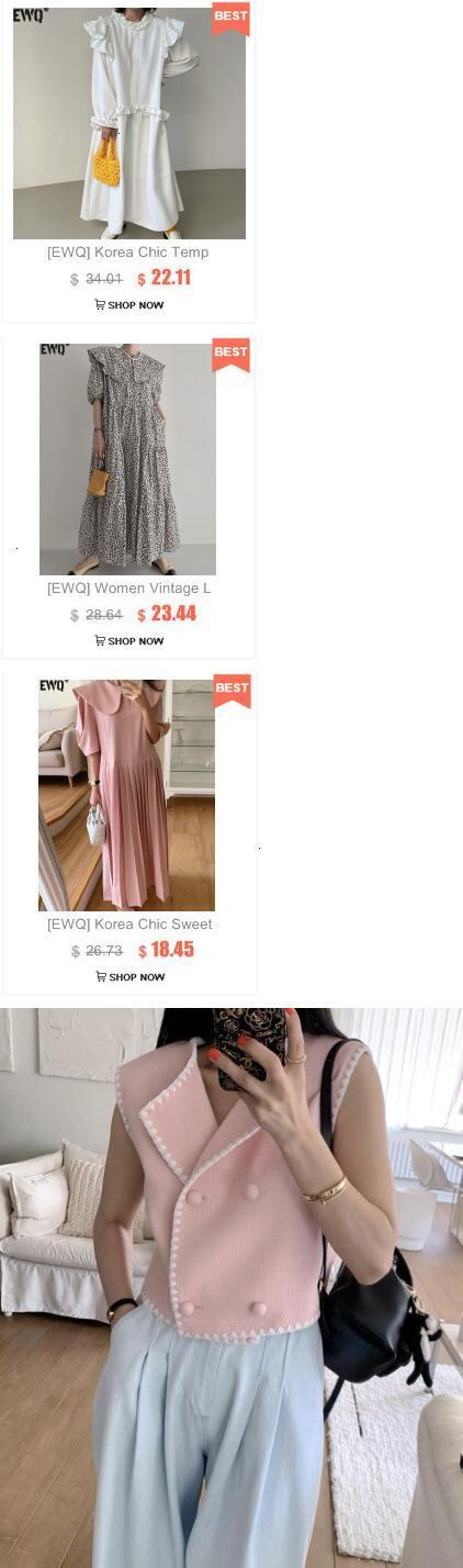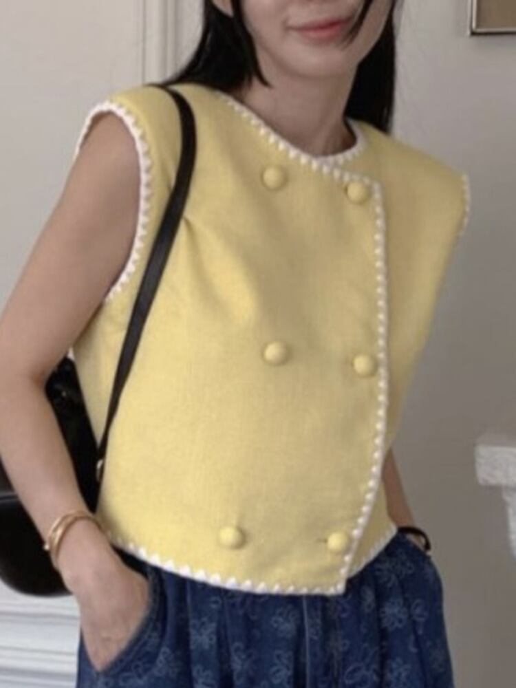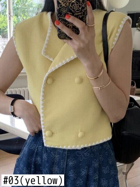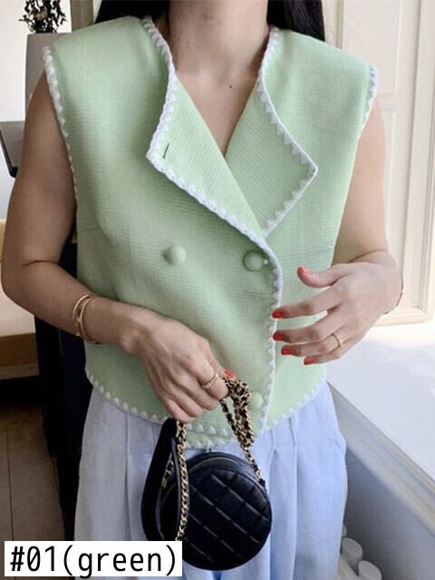 [EWQ] ラペルコントラスト薄型ベストダブルブレスト O ネックショートトップス夏潮ノースリーブジャケット U790 サマー 夏物 Oネック