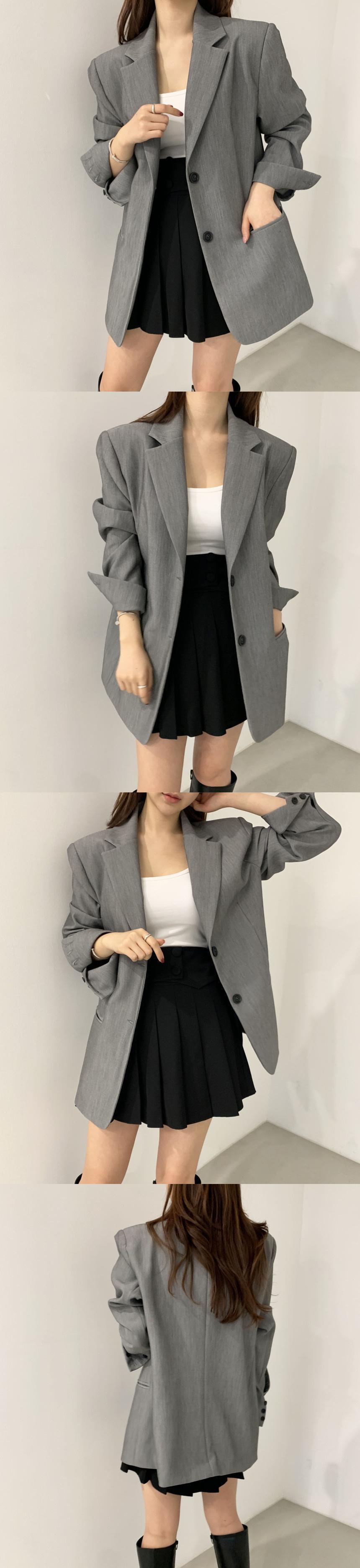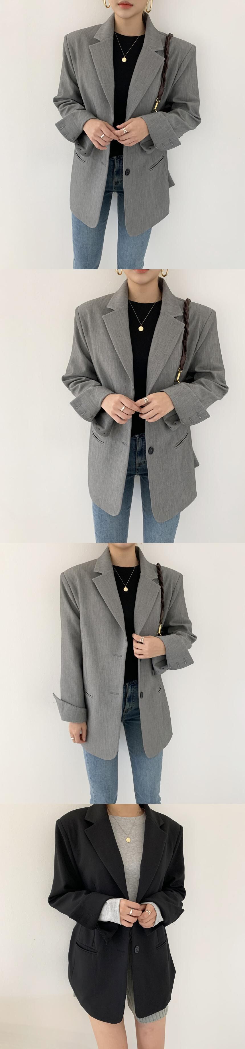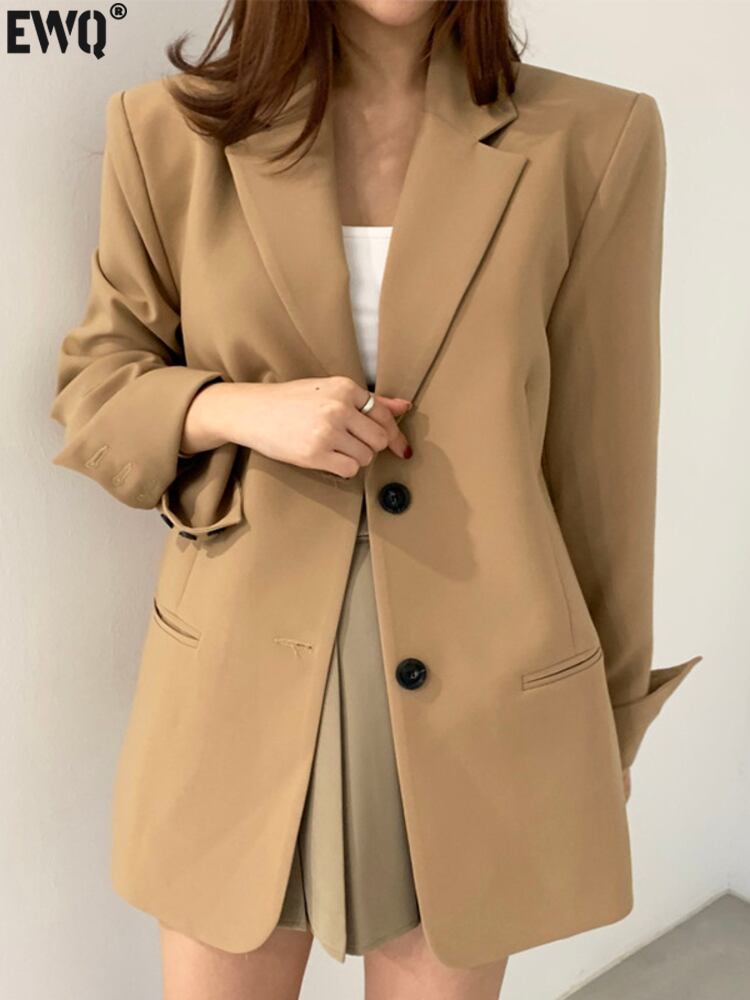 [EWQ] 2 ボタンブレザーコートシンプルルーズ長袖カーキポケットスーツジャケット秋潮服 O64 ロング オータム 秋物