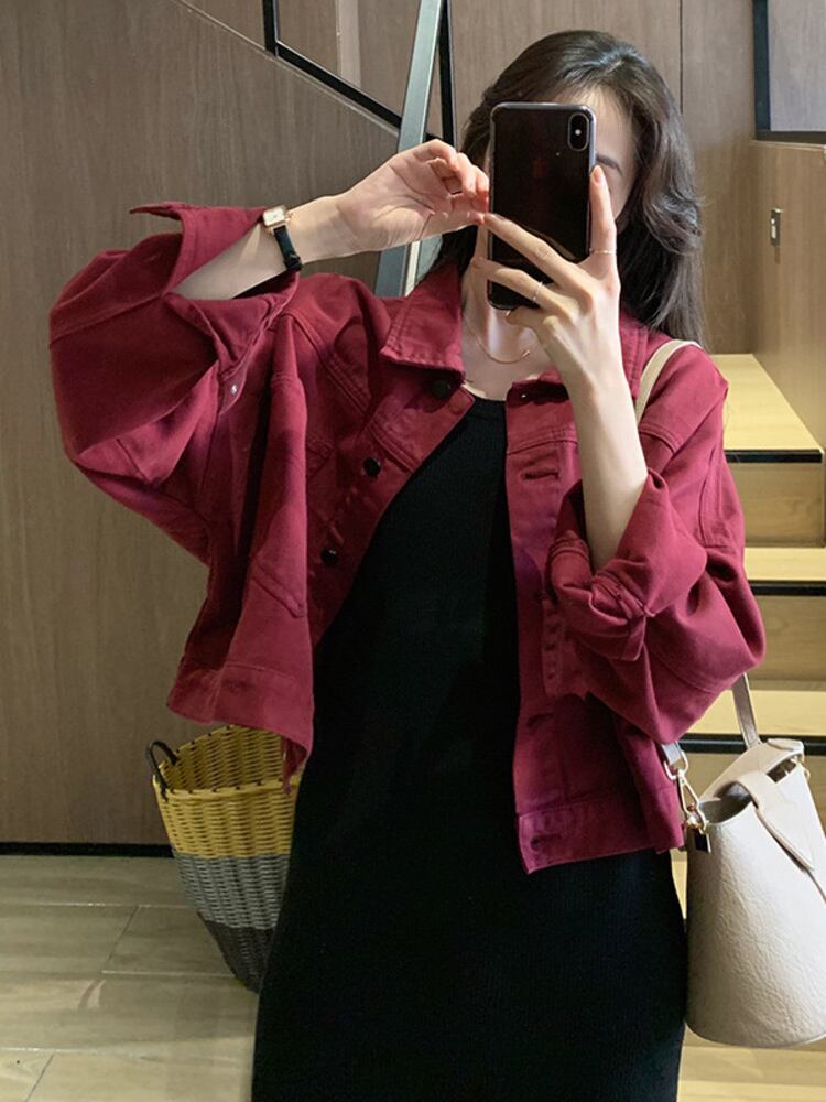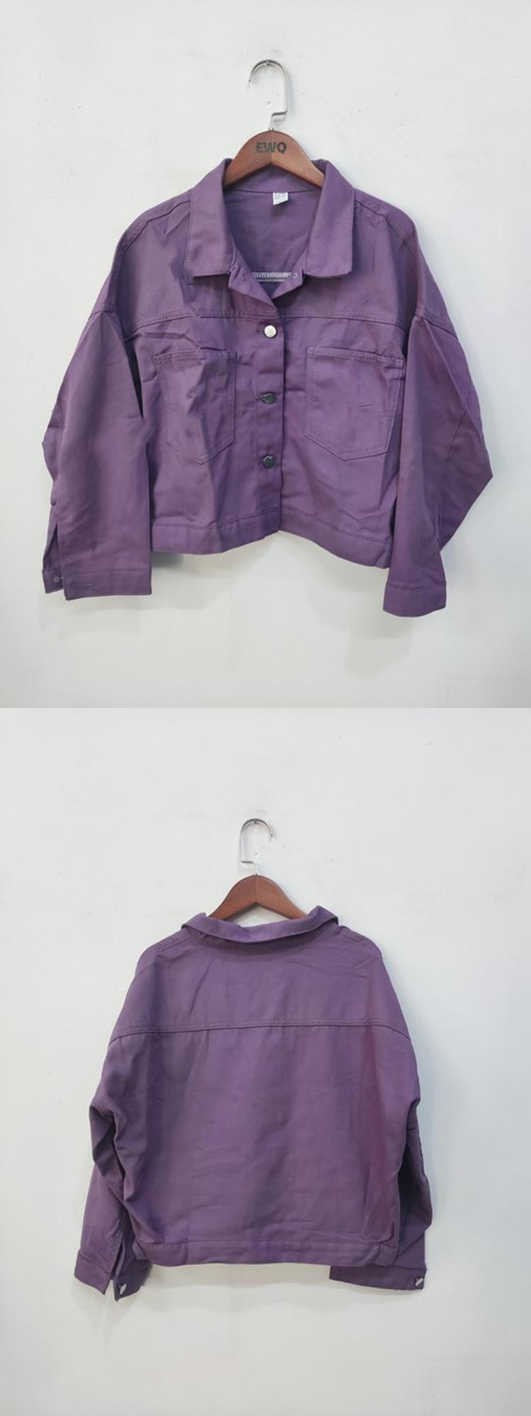 [EWQ] デニムショートジャケットポケットスプライシングシングルブレストパープルジャケットコート秋潮アウター 16U898 オータム 秋物